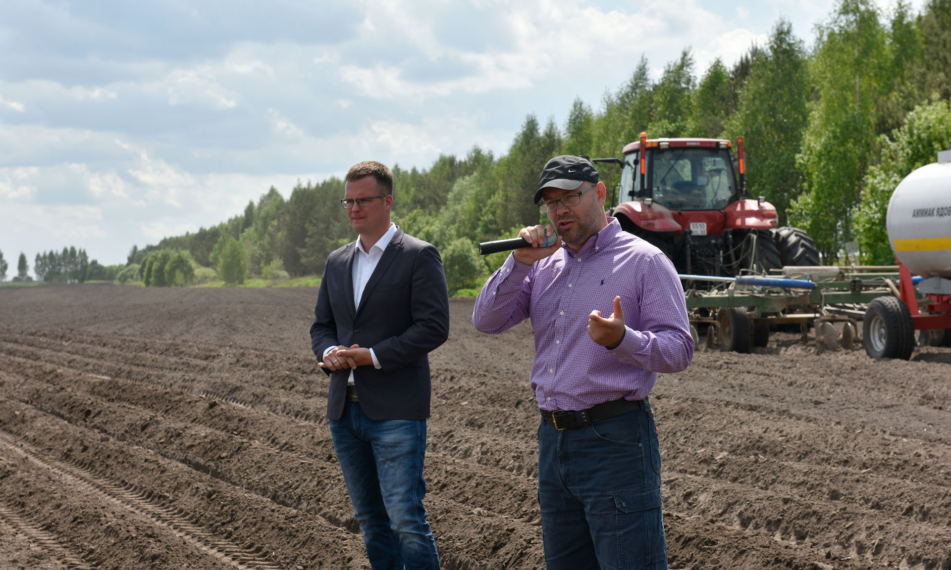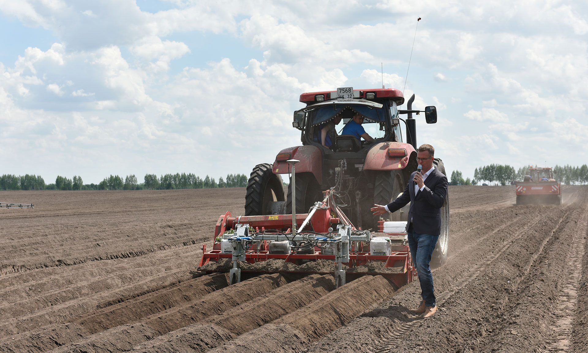 Представитель фирмы ООО «Агри 2.0 Точное земледелие» Кристиан-Де Фриз более подробно рассказал о системе точного земледелия и о тех результатах, которые дает ее использование. Так, благодаря системе параллельного вождения, основанной на использовании сигнала спутниковой навигации, движение сельхозтехники по полю осуществляется с точностью до 2 см и картофель высаживается точно в центр гребня, что является важным условием развития полноценного растения.