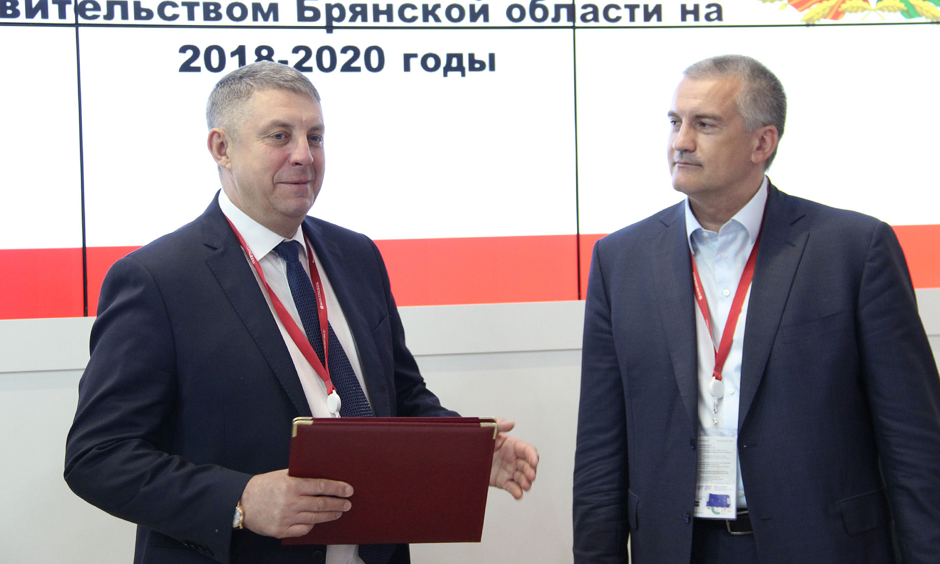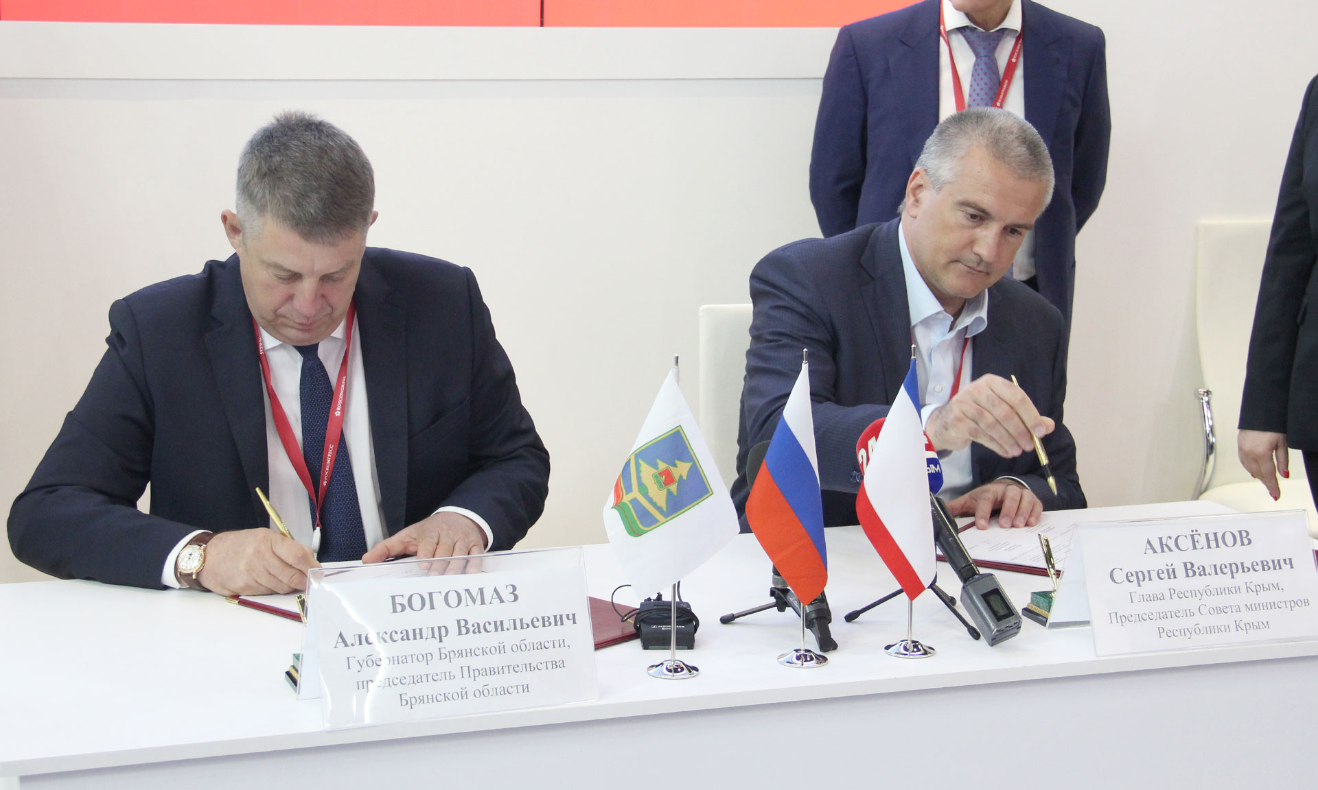 Губернатор Брянской области Александр Богомаз и Глава Республики Крым Сергей Аксенов подписали соглашение о сотрудничестве