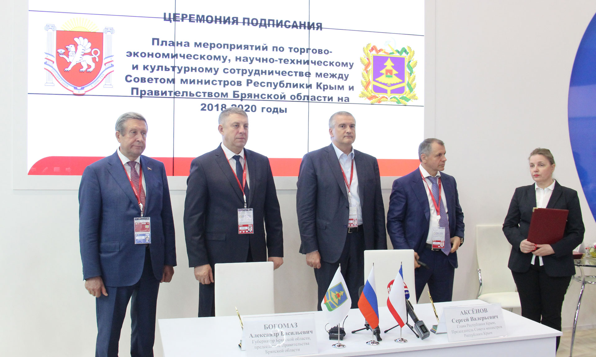 Соглашение подписано между Правительством Брянской области и Советом министров Республики Крым на 2018–2020 годы. Оно предусматривает сотрудничество в торгово-экономической и научно-технической, дорожно-транспортной сферах, сельском хозяйстве, образовании, промышленности, культуре и туризме, физической культуре и спорте, здравоохранении, в области охраны окружающей среды и рационального использования природных ресурсов, в области труда и занятости.