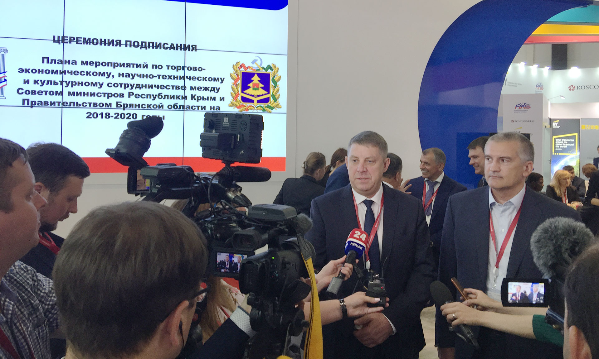Соглашение подписано между Правительством Брянской области и Советом министров Республики Крым на 2018–2020 годы. Оно предусматривает сотрудничество в торгово-экономической и научно-технической, дорожно-транспортной сферах, сельском хозяйстве, образовании, промышленности, культуре и туризме, физической культуре и спорте, здравоохранении, в области охраны окружающей среды и рационального использования природных ресурсов, в области труда и занятости.