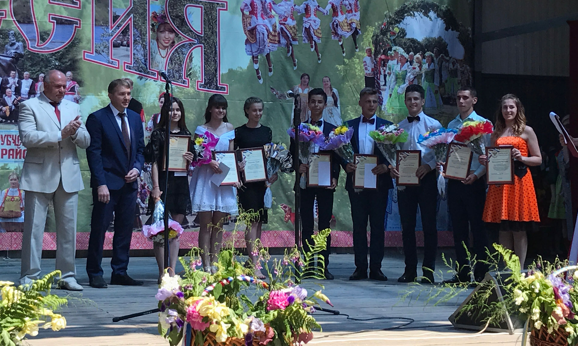 После того, как глава Трубчевского района Сергей Ященко объявил 33-й праздник «На земле Бояна» открытым, Николаем Гавриловичем — от Беларуси, Анатолием Мироненко — от Украины и Владимиром Сорочкиным — от России был поднят флаг праздника.