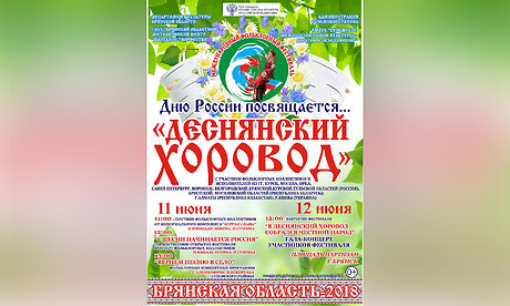 С 10 по 12 июня в Брянской области пройдет фольклорный фестиваль «Деснянский хоровод», который уже в пятый раз соберет самые интересные коллективы из разных уголков Белоруссии, Казахстана, России и Украины. В этом году он впервые пройдет в статусе Международного.