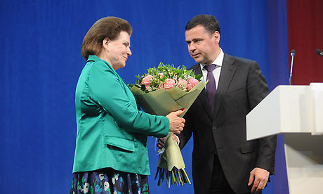 «Уважаемая Валентина Владимировна! От всей души поздравляю Вас с замечательным юбилеем — 55-летием со дня Вашего полета на космическом корабле „Восток-6“. В летописи освоения Вселенной первый полет женщины-космонавта стал эпохальным событием, а Ваш позывной „Чайка“ навсегда в истории российской космонавтики.