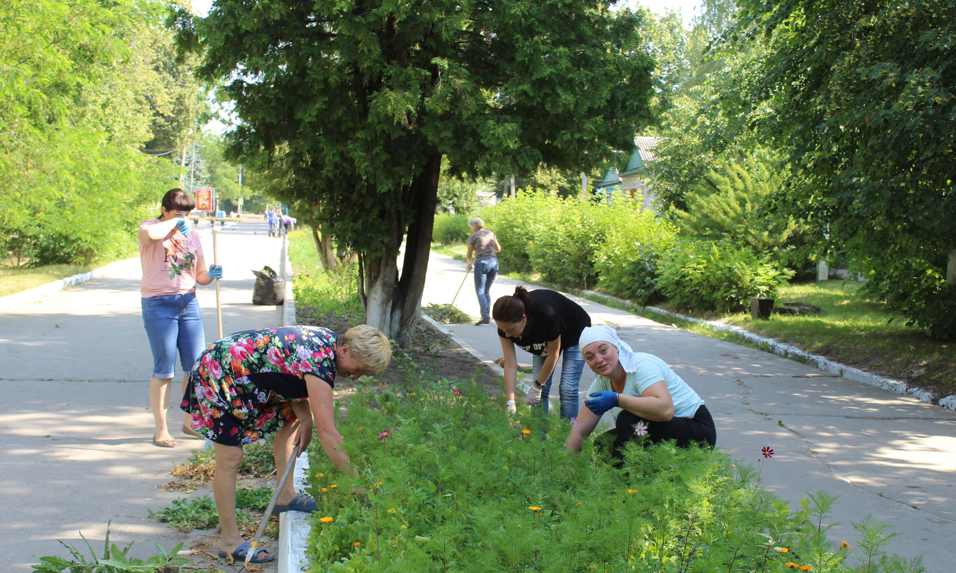 Кроме этого, на центральной площади поселка Суземка произведена прополка и поливка клумб, подметен и убран песок.