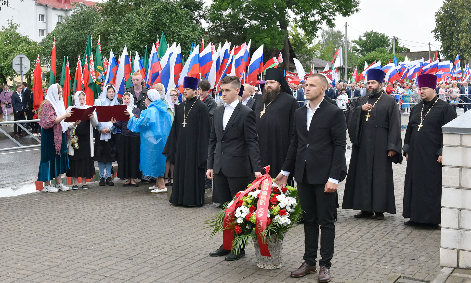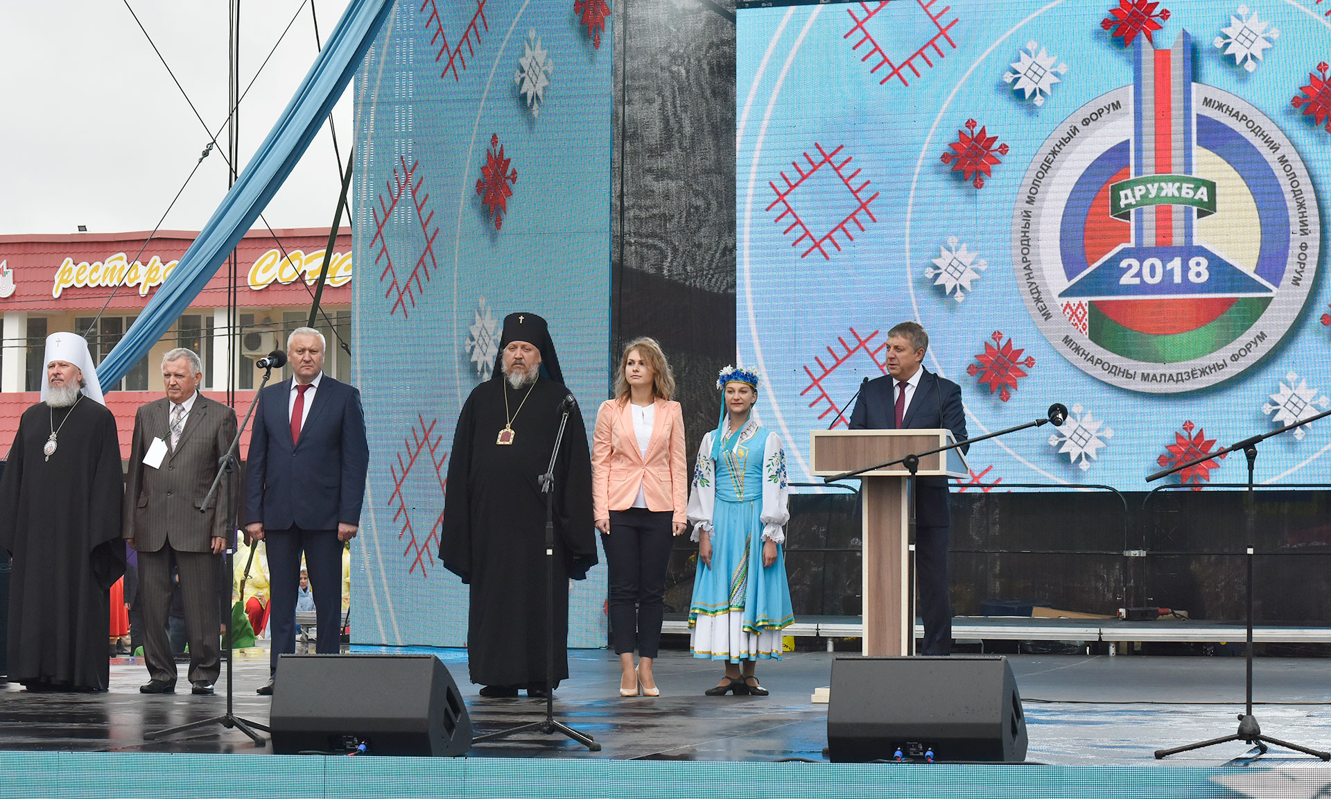 После этого в Спасо-Преображенском соборе состоялся молебен. Затем участники мероприятия возложили цветы к памятнику отселенным деревням. Также гости фестиваля посетили молодежную площадку «Молодежь! Инициатива! Творчество! Профессионализм!». После чего хозяева и гости мероприятия приняли участие в торжественном открытии Международного фестиваля славянских народов «Славянское единство — 2018».