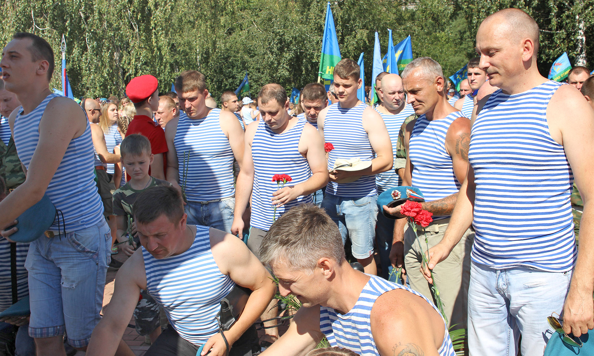 Торжество в честь Дня ВДВ началось с возложения цветов. Десантники вместе с детьми и жёнами несли к постаменту красные гвоздики, склоняли головы и преклоняли колена. Память сослуживцев и ветеранов почтили минутой молчания.