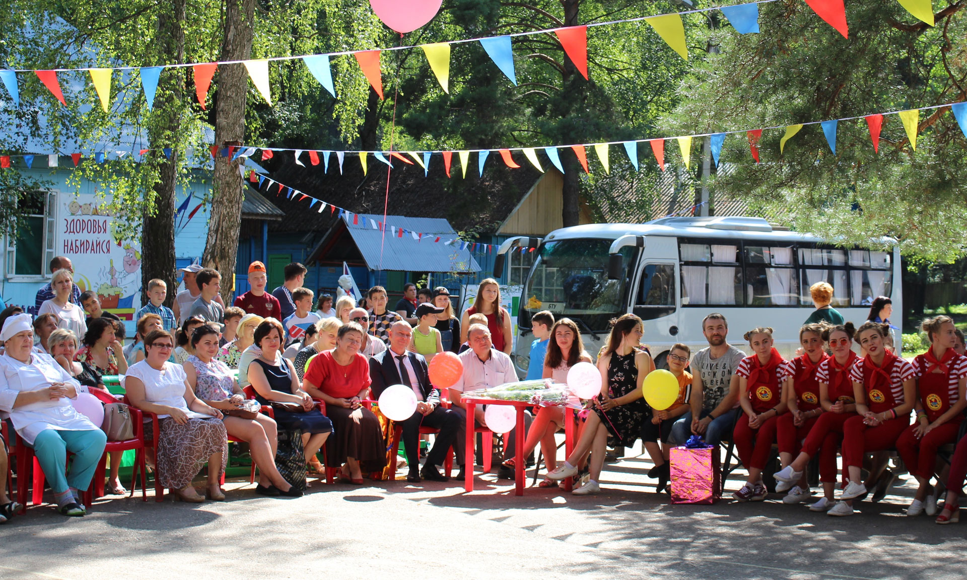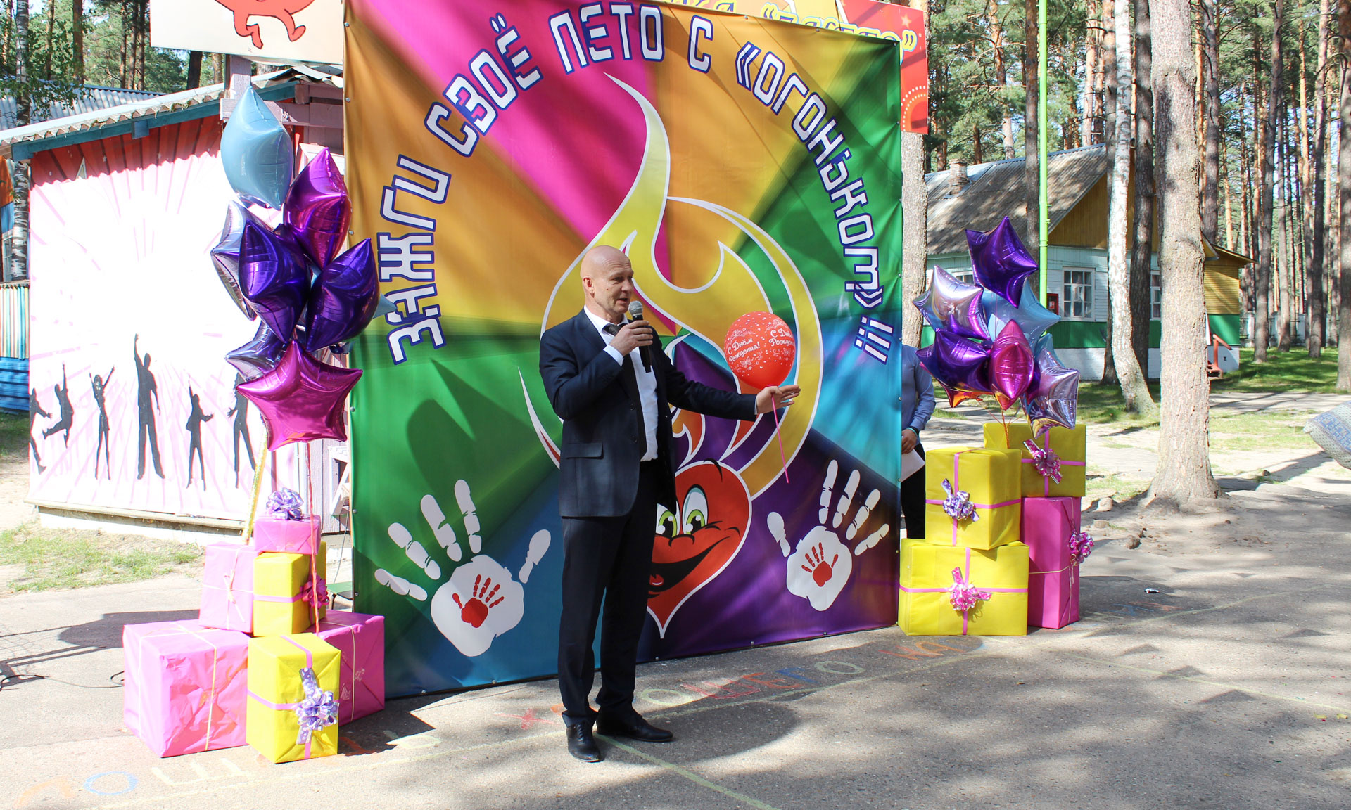 — Сердечно поздравляю от имени Губернатора Брянской области Александра Васильевича Богомаза вас всех, и прежде всего — людей, которые работают с детьми. Это нелегкий и благородный труд- найти общий язык с разновозрастными мальчишками и девчонками. Каждое лето на полтора месяца я приезжал в наш замечательный детский лагерь, и так продолжалось десять лет. Это незабываемые воспоминания. Мира вам, добра, и будьте такими же веселыми и хорошими, какие вы сейчас. Всех с праздником!