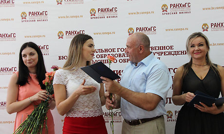 15 августа в Брянском филиале РАНХиГС состоялась церемония вручении дипломов выпускникам заочной формы обучения. В мероприятии приняли участие почетные гости: врио заместителя Губернатора Брянской области Владимир Оборотов, заместитель Председателя Брянской областной Думы Анатолий Бугаев, заместитель руководителя Администрации Губернатора Брянской области и Правительства Брянской области — начальник управления государственной службы и кадров Николай Мамичев, начальник управления Федеральной налоговой службы России по Брянской области Андрей Маркелов, начальник отдела департамента образования и науки Брянской области Сергей Никольский.