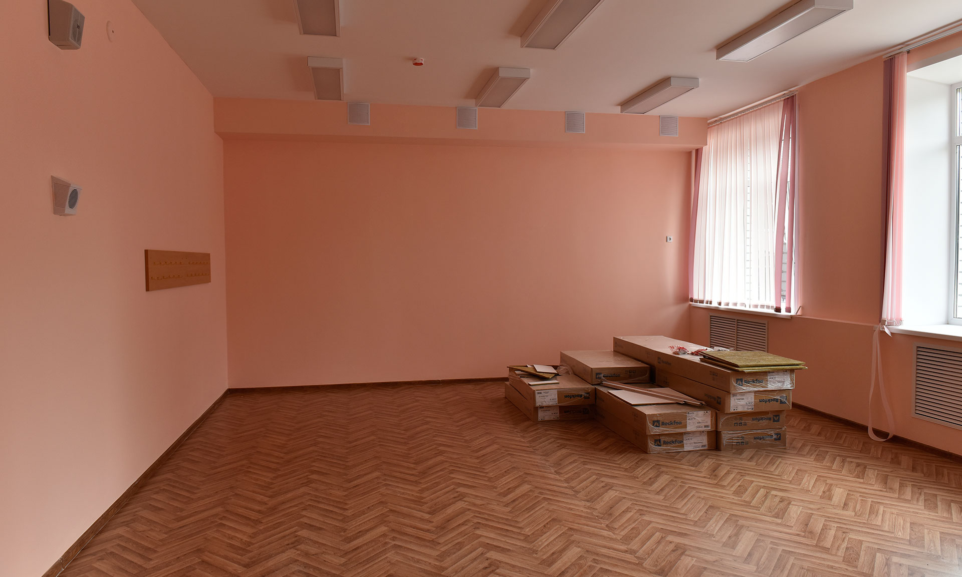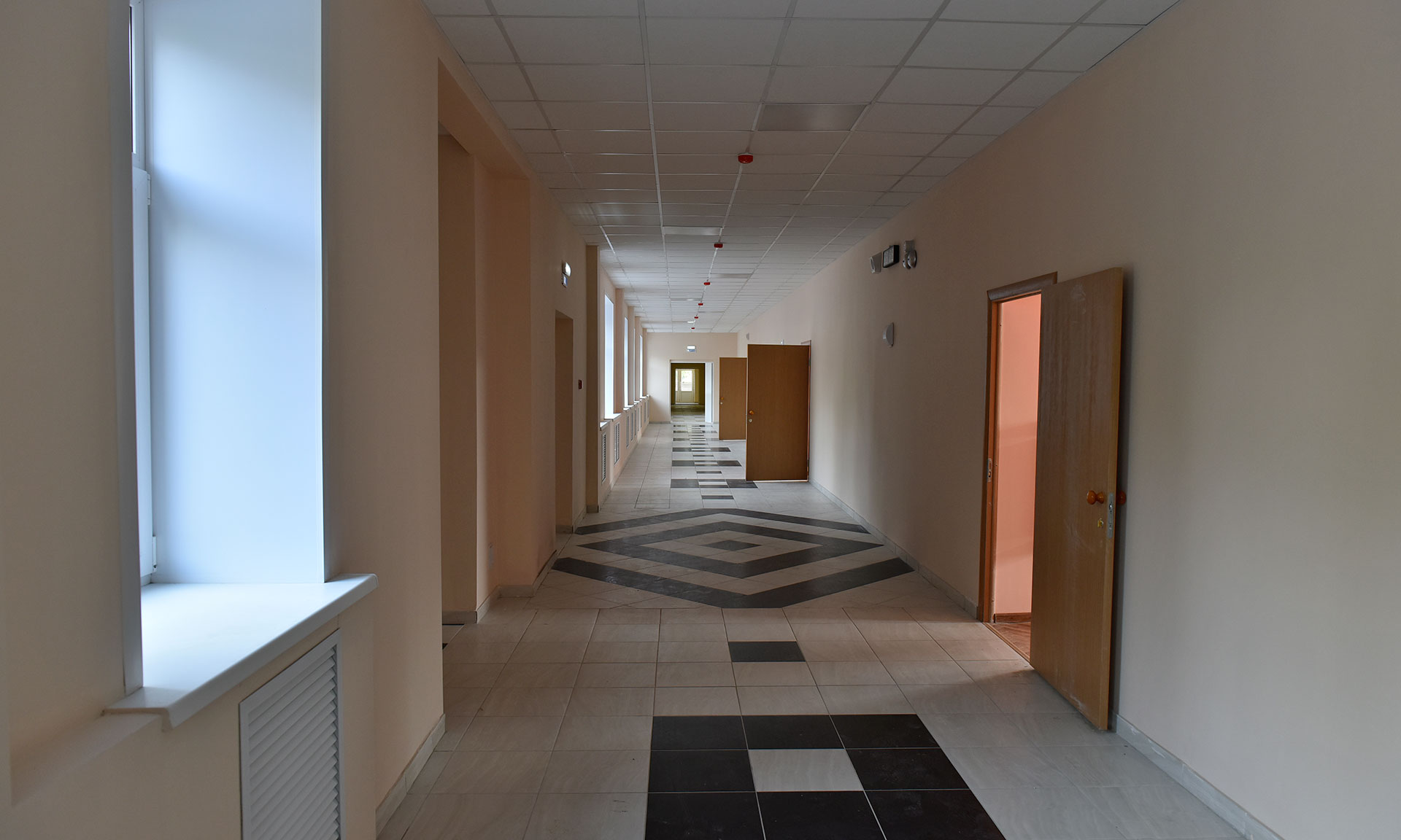 Сейчас строительно-монтажные работы на объекте завершены. Отделочные работы внутренних помещений, а также благоустройство территории выполнены на 99%.