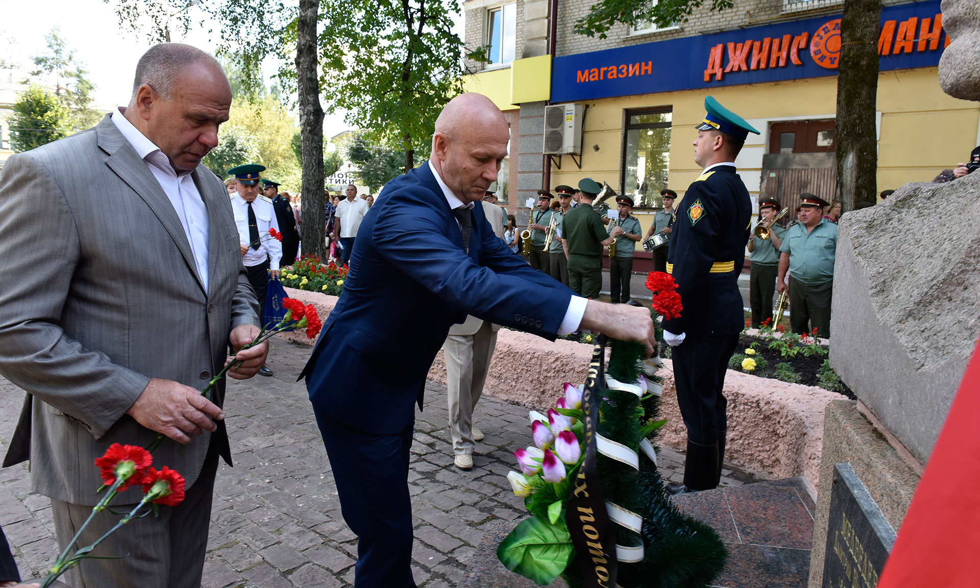 В торжественном мероприятии приняли участие заместитель Губернатора Брянской области Александр Коробко, заместитель председателя областной Думы Анатолий Бугаев, первый заместитель главы Брянской городской администрации Виктор Предеха, председатель Бежицкой территориальной депутатской группы Брянского городского Совета народных депутатов Наталья Моисеева, заместитель начальника управления ФСБ России по Брянской области Сергей Грезин, заместитель начальника пограничного управления ФСБ России по Брянской области Андрей Звезда, заместитель начальника управления Росгвардии по Брянской области Сергей Сердюк, военный комиссар Бежицкого и Володарского районов города Брянска Игорь Князев, председатель Бежицкого районного Совета ветеранов Ася Гавриловна Коношенко, председатель Брянской общественной организации «Ветераны органов безопасности» Александр Андреевич Полуешкин, председатель Совета региональной общественной организации «Ветераны-пограничники Брянской области» Александр Васильевич Калибердин, школьники, жители города.