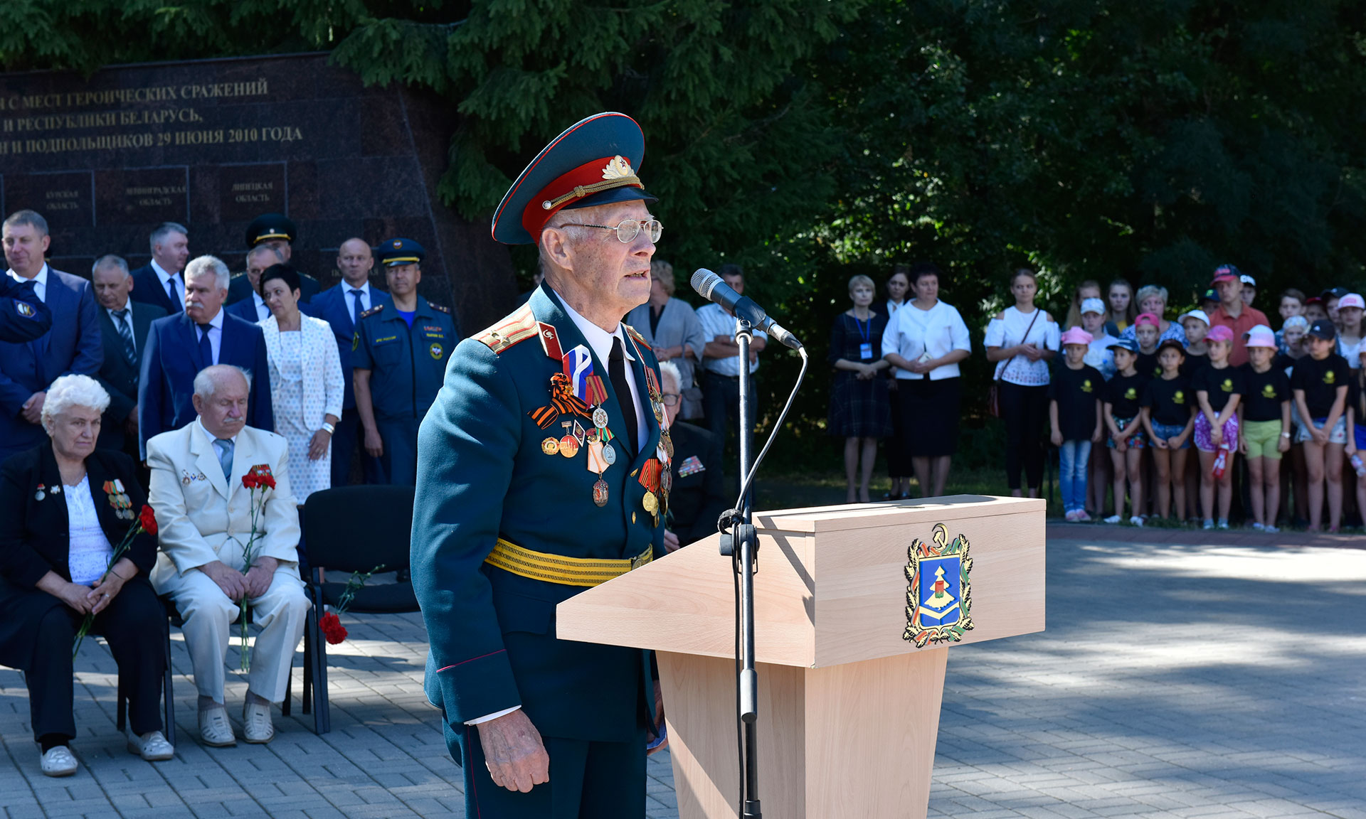 По поручению Президента России Владимира Владимировича Путина приветствую всех присутствующих на сегодняшней церемонии. И в первую очередь главных ее участников — ребят, которые сегодня дают торжественную клятву на верность Отечеству, юнармейскому братству. Особенно символично, что вы вступаете в ряды Юнармиии в канун празднования 75-й годовщины освобождения Брянщины от немецко-фашистских захватчиков. В период оккупации здесь непрерывно шло народное сопротивление. Почти 200 Героев Советского Союза воспитала Брянская земля. Среди них люди разных званий и поколений. Вечно молодые Павел Зайцев и Даниил Ананченко совершили бессмертный подвиг, закрыв собой амбразуру вражеских дотов и дав возможность однополчанам одолеть врага. В решающий момент боя рядовой Савелий Дринь бросился под вражескую самоходную артиллерийскую установку со связкой противотанковых гранат.