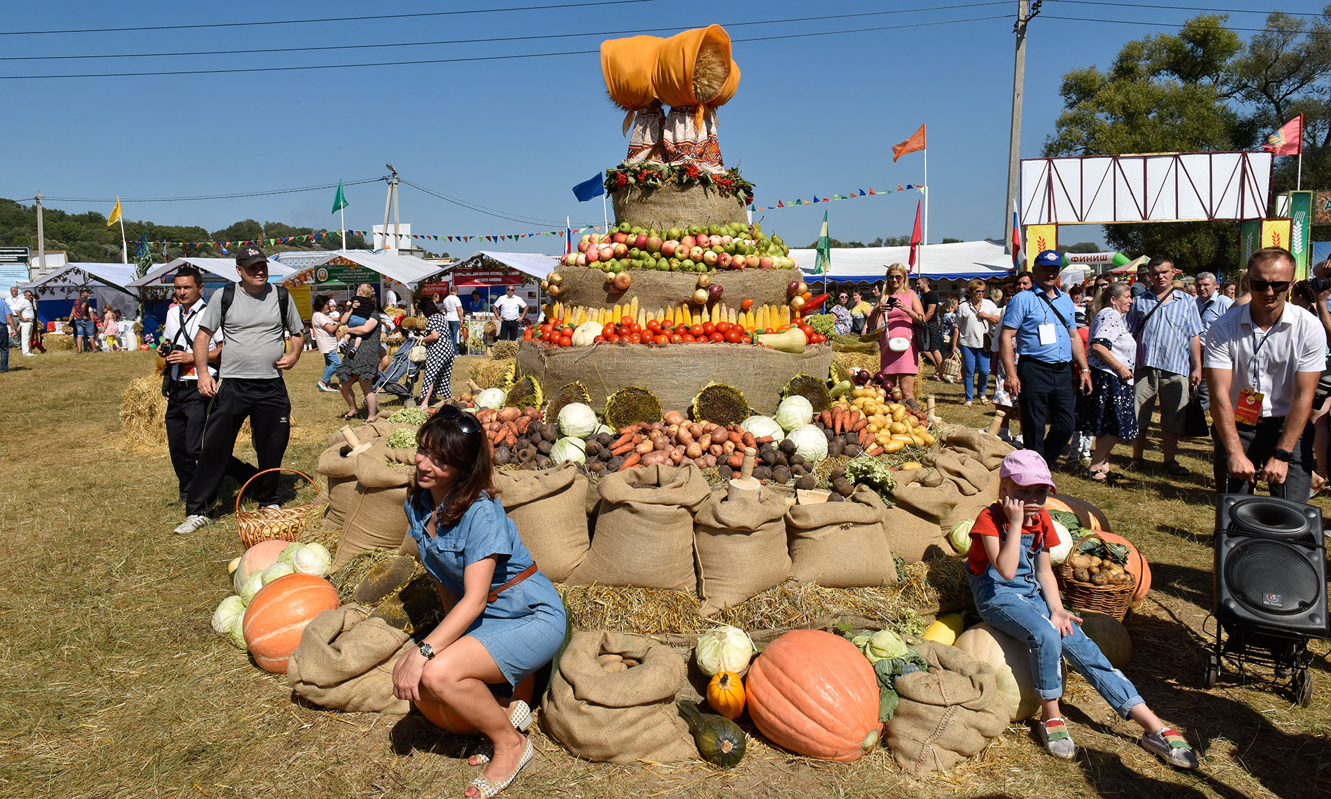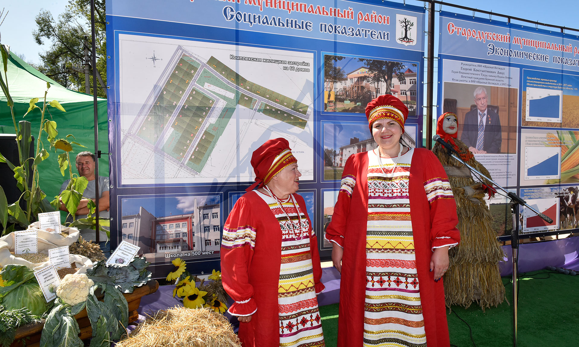 Невозможно представить «Свенскую ярмарку» без ярких содержательных подворий городов и районов Брянской области, как невозможно говорить о достижениях Брянщины без огромного вклада всех муниципальных образований региона. Главным признаком достатка во все времена был «хлеб на столе». Именно хлебом угощали почетных гостей и странствующих путников, считали его величайшим богатством. Брянская область за последние годы стала краем золотых пшеничных полей. В 2017 году в регионе собрано 1 миллион 851 тысяч тонн зерна, а в этом году мы приближаемся к 2 миллионам тонн. На сцену поднялись руководители органов местного самоуправления муниципальных районов и городских округов Брянской области с главным символом доброго урожая — снопом.