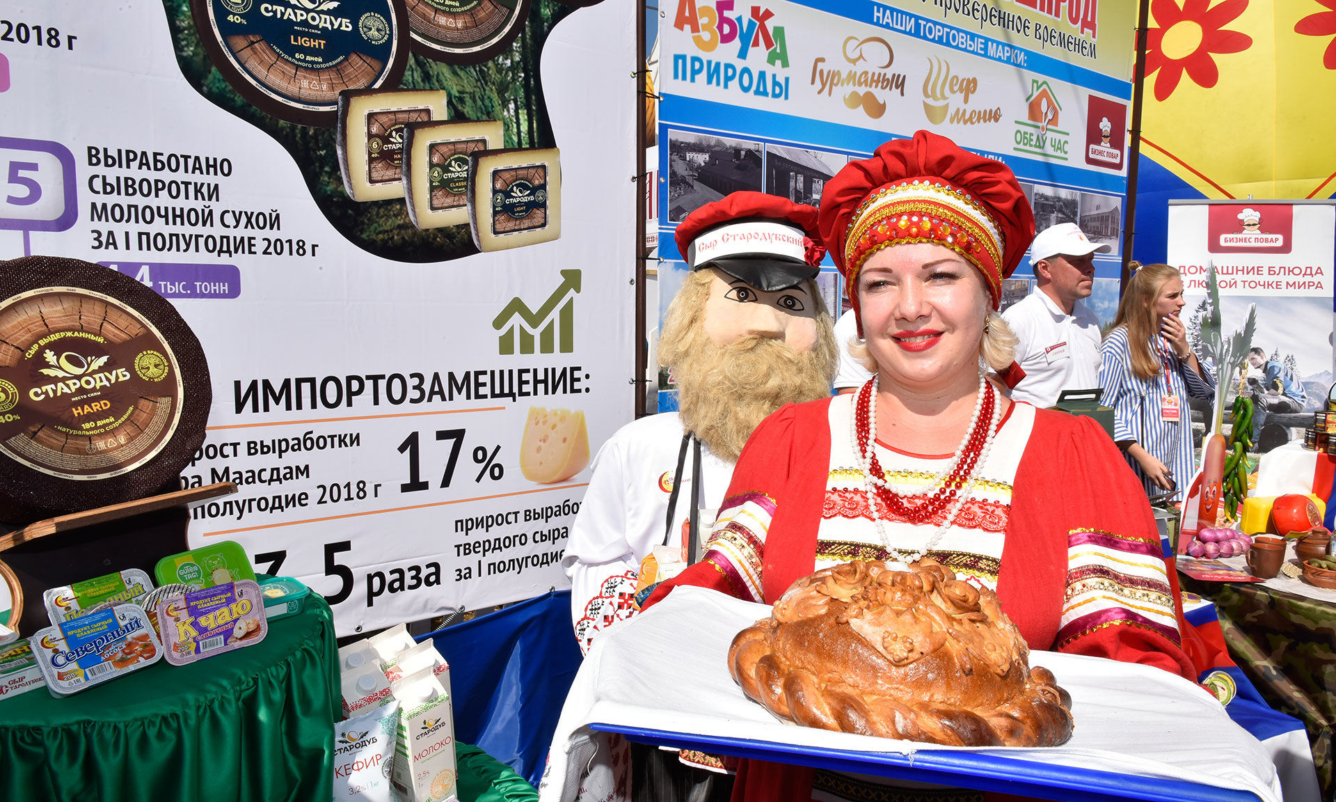«Брянская улица» — традиционная площадка, где были представлены выставочные экспозиции 55 ведущих предприятий и организаций региона. Почетные гости увидели, в частности, новинки предприятий машиностроения, в том числе Брянского тракторного завода. Глава региона лично убедился в том, насколько удобна кабина современного трактора. Затем все могли оценить потенциал импортозамещения в перерабатывающей промышленности — попробовать продукцию Бежицкого хлебокомбината, Брянского хлебокомбината, агрохолдинга «Охотно», компании «Куриное царство», «Сыр Стародубский», Брянского молочного комбината, «Умалат» и других.