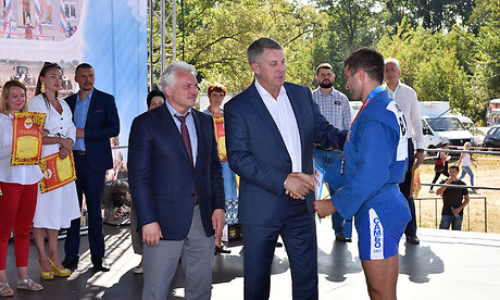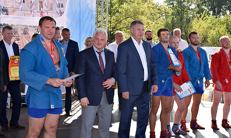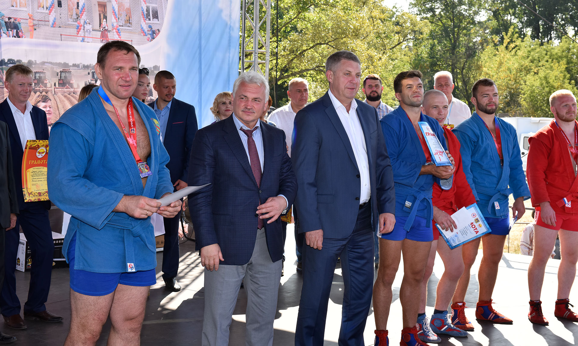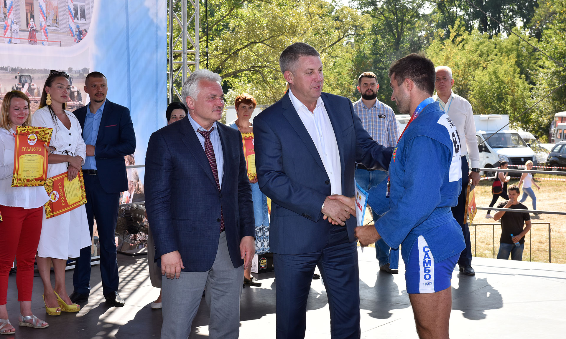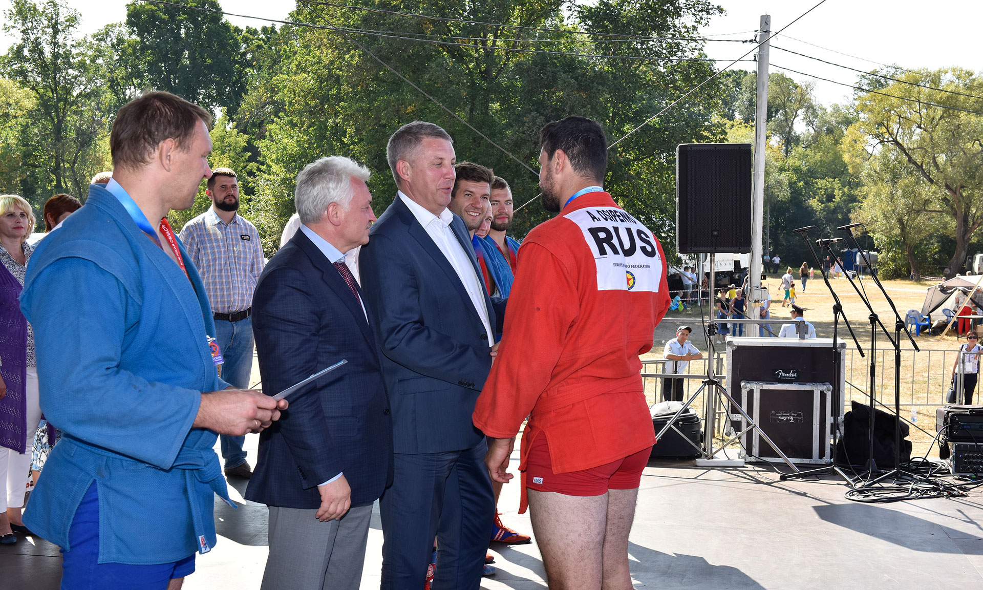 Победителей международных соревнований по самбо наградили Губернатор Брянской области Александр Богомаз и президент Всероссийской и Европейской федераций самбо Сергей Елисеев. Самбистам вручены медали, грамоты и денежные призы.