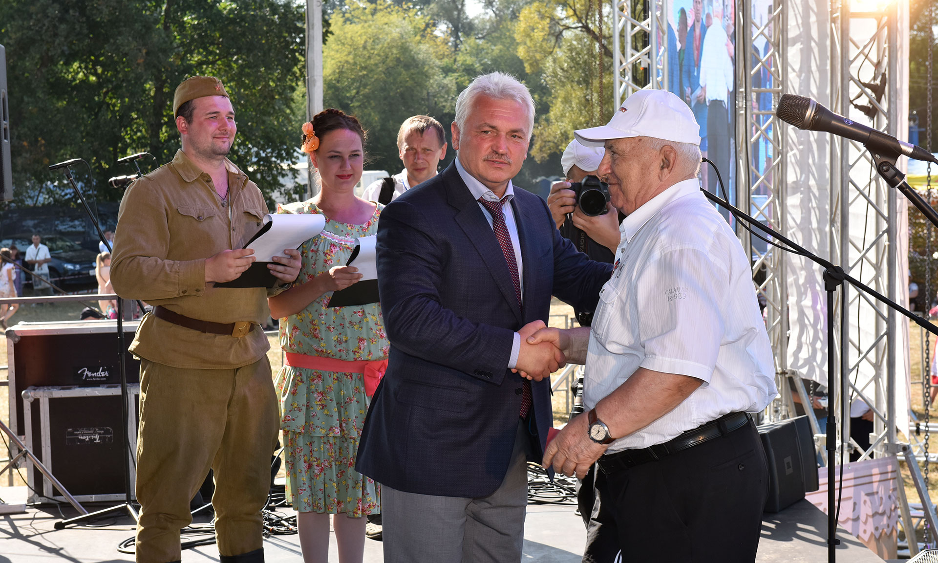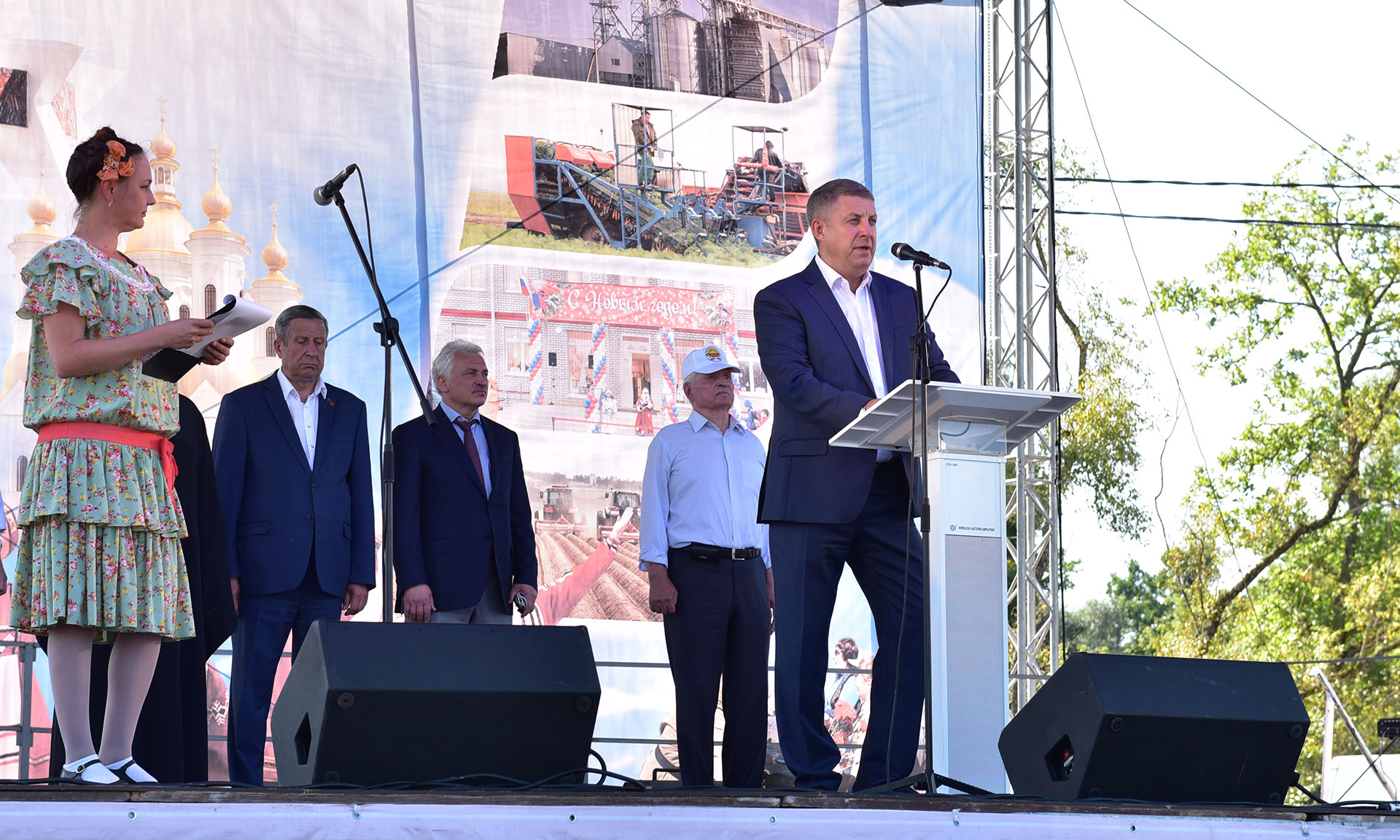 Сегодняшняя наша ярмарка проходит в юбилейный год, год освобождения нашей области от захватчиков. И я не могу не сказать слова огромной благодарности нашим ветеранам, всем, кто сражался, кто положил свои жизни во имя нашей страны, нашим предкам. Ведь у нас на Брянщине нет ни одной семьи, кого бы ни коснулась Великая Отечественная война. И сегодня я говорю слова огромной благодарности, простое русское спасибо нашим ветеранам, за их подвиг, который они совершили во имя нас, ныне живущих, за мощь и величие нашей страны, за то, что действительно их пример, их поколение по праву является поколением победителей. Их пример дает веру и уверенность в великую, могучую, непобедимую Россию. А чтобы она была непобедимая, единая и великая, нам не только нужно создать производство, чтобы работала экономика, промышленные предприятия, сельское хозяйство, нам нужно сделать самое главное — воспитать наших наследников, воспитать детей, подростков, которые будут в дальнейшем развивать нашу страну. Вот если мы не возродим нашу культуру, не воспитаем наших детей, все богатства можно потерять. Об этом говорит вся история развития мира. И сегодня мы с вами ответственны за будущее нашей малой Родины — Брянщины и за будущее нашей страны. Еще раз поздравляю всех с праздником, еще раз здоровья и успехов!