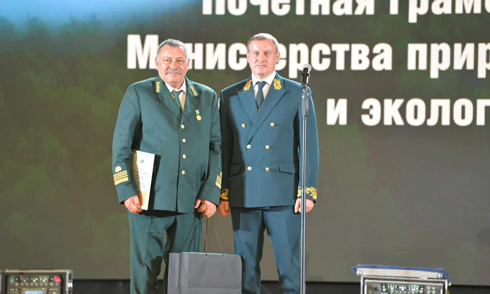 Закончились мероприятия в Государственном Кремлевском дворце торжественным собранием, посвященным Дню работников леса, на котором вручались награды лучшим работникам лесного хозяйства Российской Федерации. Почетную грамоту Министерства природных ресурсов и экологии Российской Федерации Иван Валентик вручил директору государственного казенного учреждения Брянской области «Дубровское лесничество» Семену Петранцову.