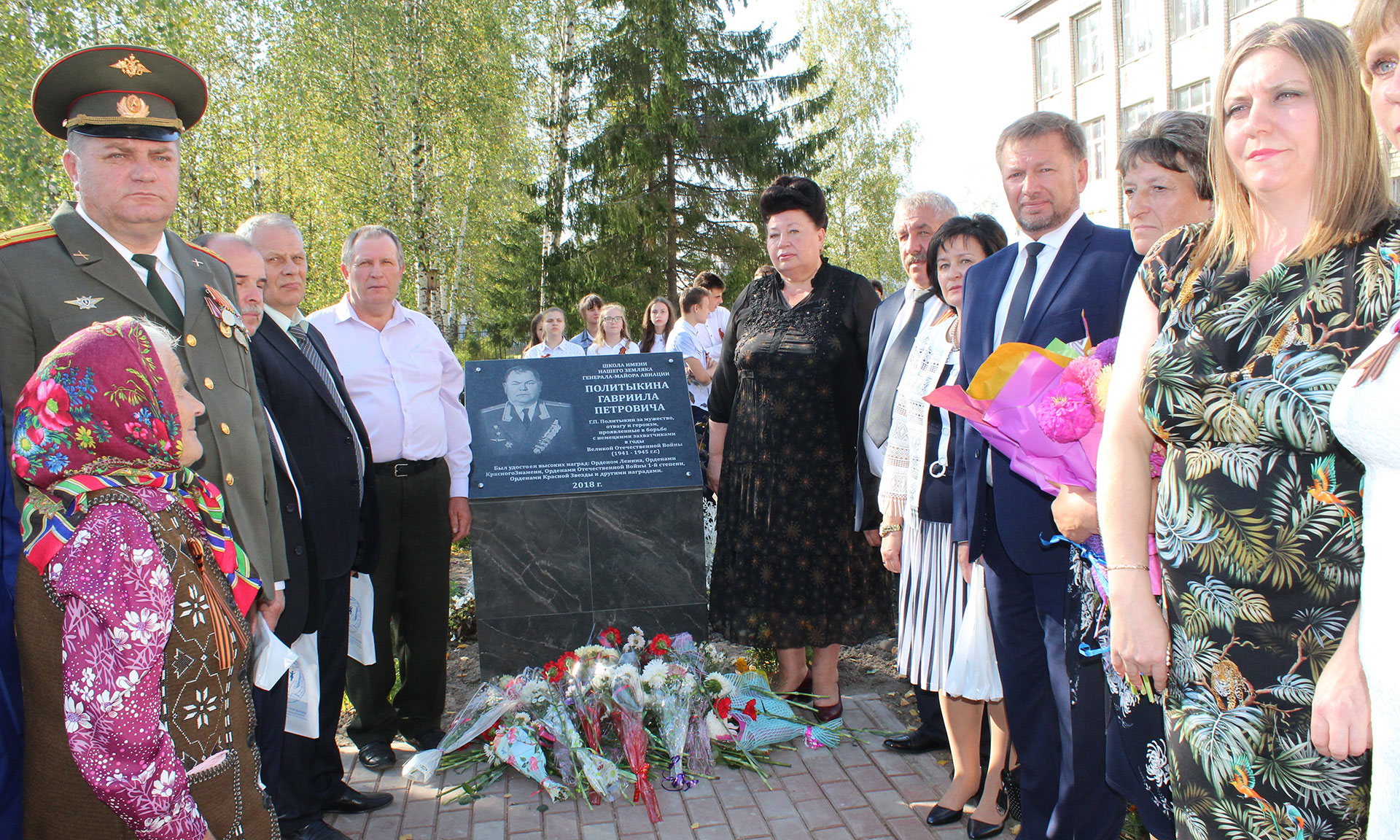 В стенах школы — почетные гости. Среди них внуки героя: заместитель Губернатора Брянской области Галина Петушкова и ее брат Виталий Пушняков, заместитель Губернатора Брянской области Сергей Сергеев, руководитель управления мировой юстиции Брянской области Виктор Снытко, активист регионального отделения Общероссийского народного фронта, куратор проекта «Имя героя — школе» Елена Чепляева, военный комиссар Дубровского, Клетнянского и Рогнединского районов Андрей Орлов, глава администрации Клетнянского района Александр Лось, глава района Николай Нечипоренко, а также заместители главы администрации района, краевед Валентин Немцов, ветераны во главе с председателем совета ветеранов Марией Зуевой, благочинный Клетнянского округа протоиерей Игорь Воликов.