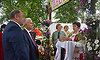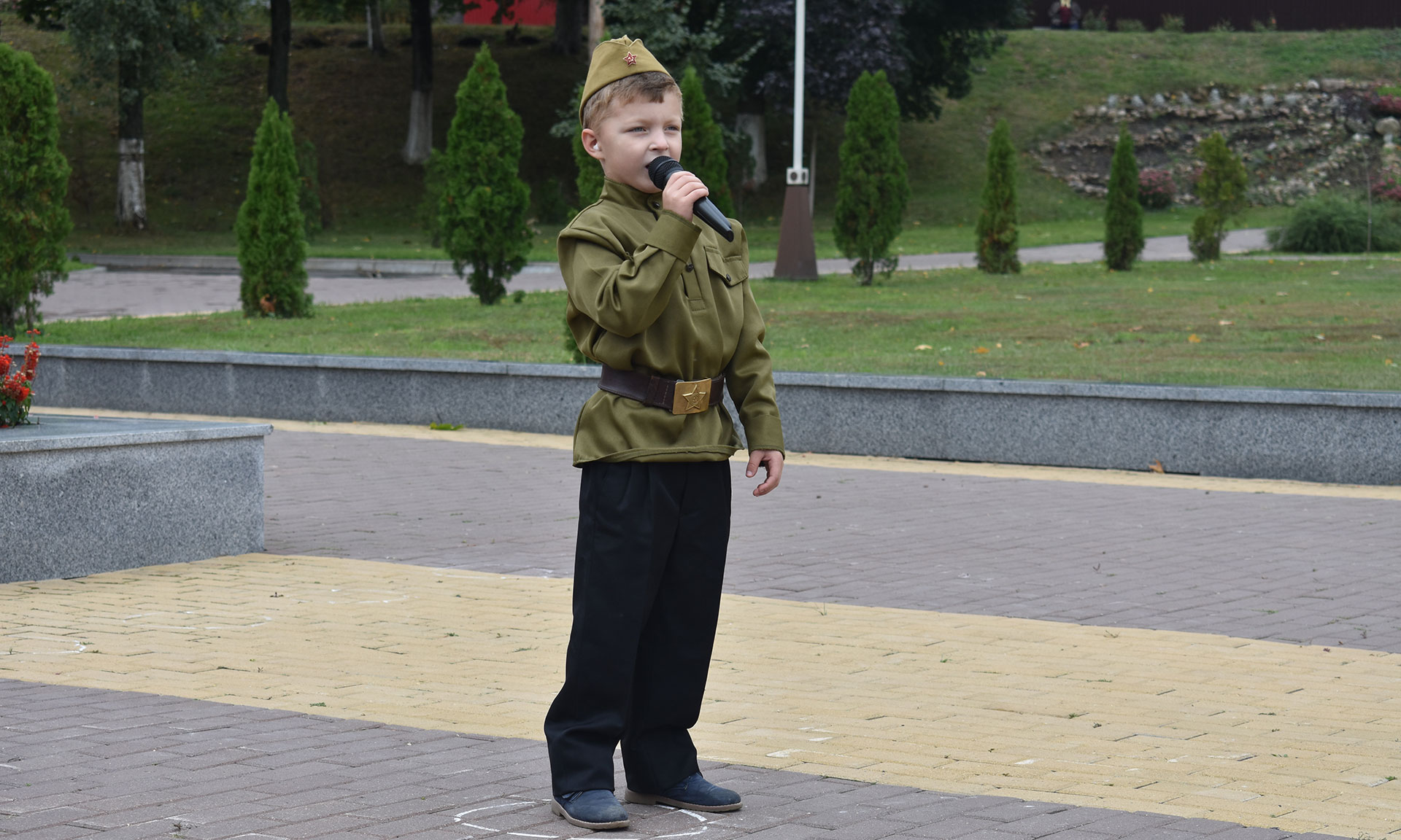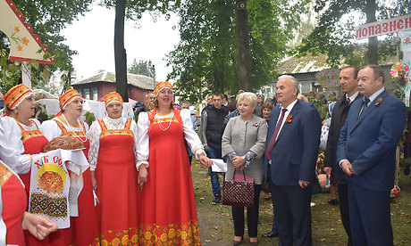 После этого праздник продолжился в городском парке. А здесь уже шумела настоящая ярмарка! Звуки детского духового оркестра из Овинчского сельского Дома культуры зазывали гостей к подворьям. Здесь их встречали работники культуры, наряженные кто в национальные одежды, кто в воинскую форму.