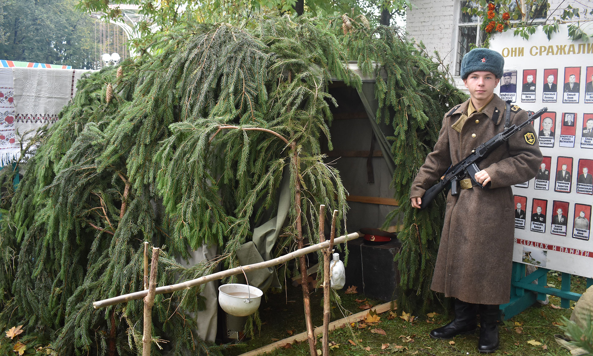 Да и как иначе, ведь тема освобождения района от немецко-фашистских захватчиков красной нитью проходила через все мероприятия, была видна в оформлении подворий. На подворье Дубровского поселения, например, оборудовали настоящую землянку, в которой горела буржуйка. Возле нее на часах стоял боец с автоматом, внутри — другие бойцы отдыхали после боя. Со всех подворий доносилась музыка и запахи шашлыков, шурпы, всяческих печений и солений.