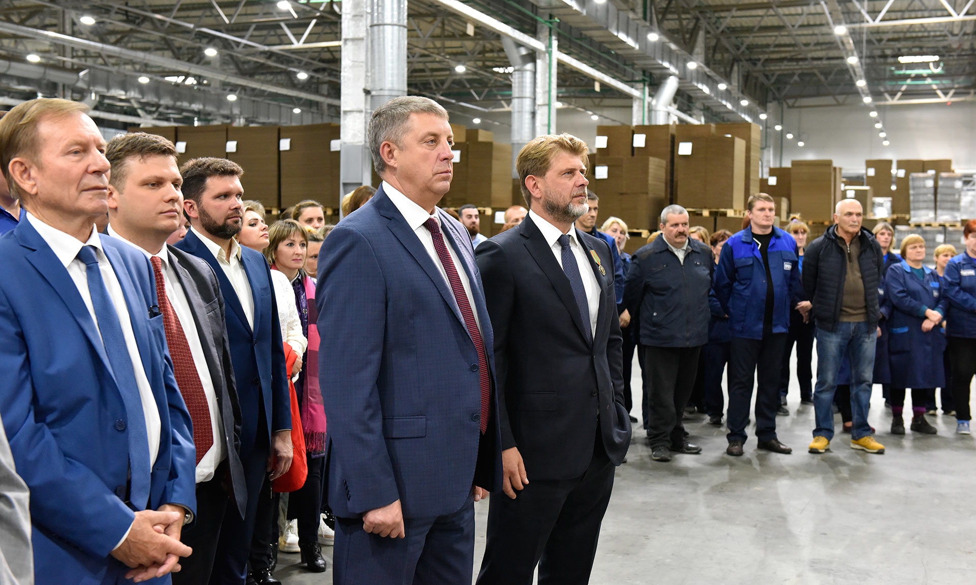 После торжественного перерезания красной ленточки гости осмотрели новый цех гофропроизводства. Затем состоялась церемония награждения руководителей и работников предприятия, участвовавших в реализации проекта.