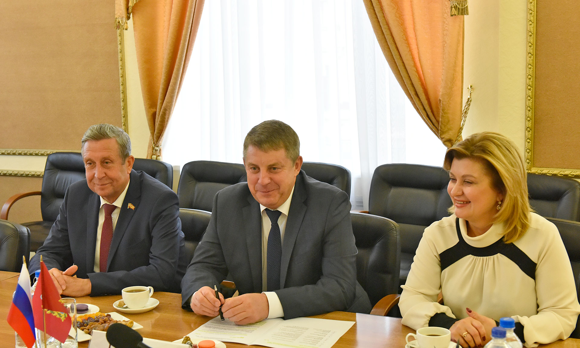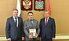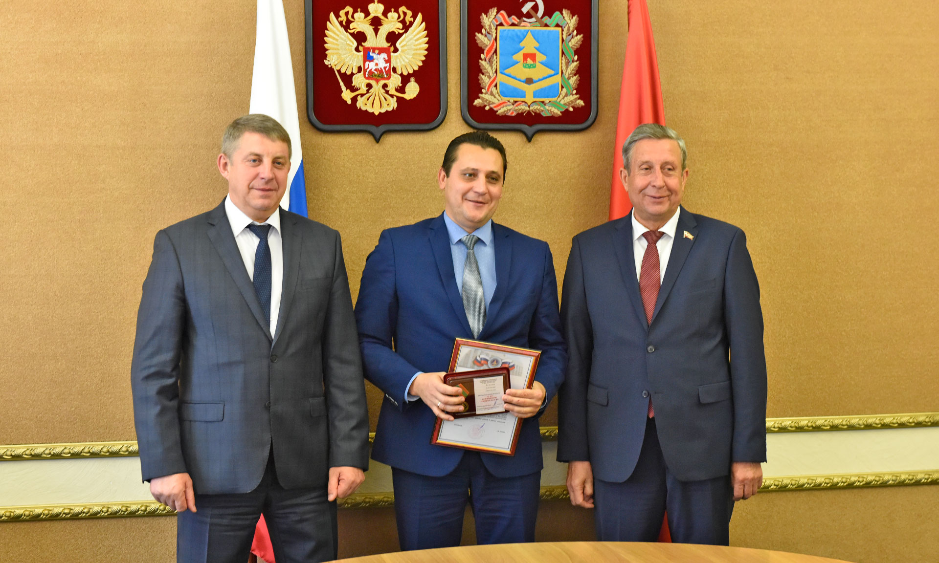 В завершение встречи Александр Богомаз вручил Юрию Клюеву Почетную грамоту Губернатора Брянской области за многолетний добросовестный труд, вклад в дело обучения и воспитания подрастающего поколения и памятную медаль «75 лет освобождения Брянской области».