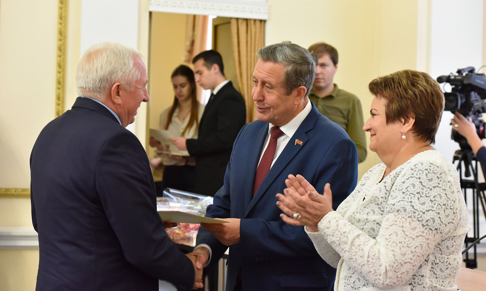 Заместитель председателя областного организационного комитета «Комсомолу — 100» Николай Мамичев присоединился к поздравлениям и пожелал всем здоровья, успехов и счастья. Обращаясь к молодым людям, сказал: