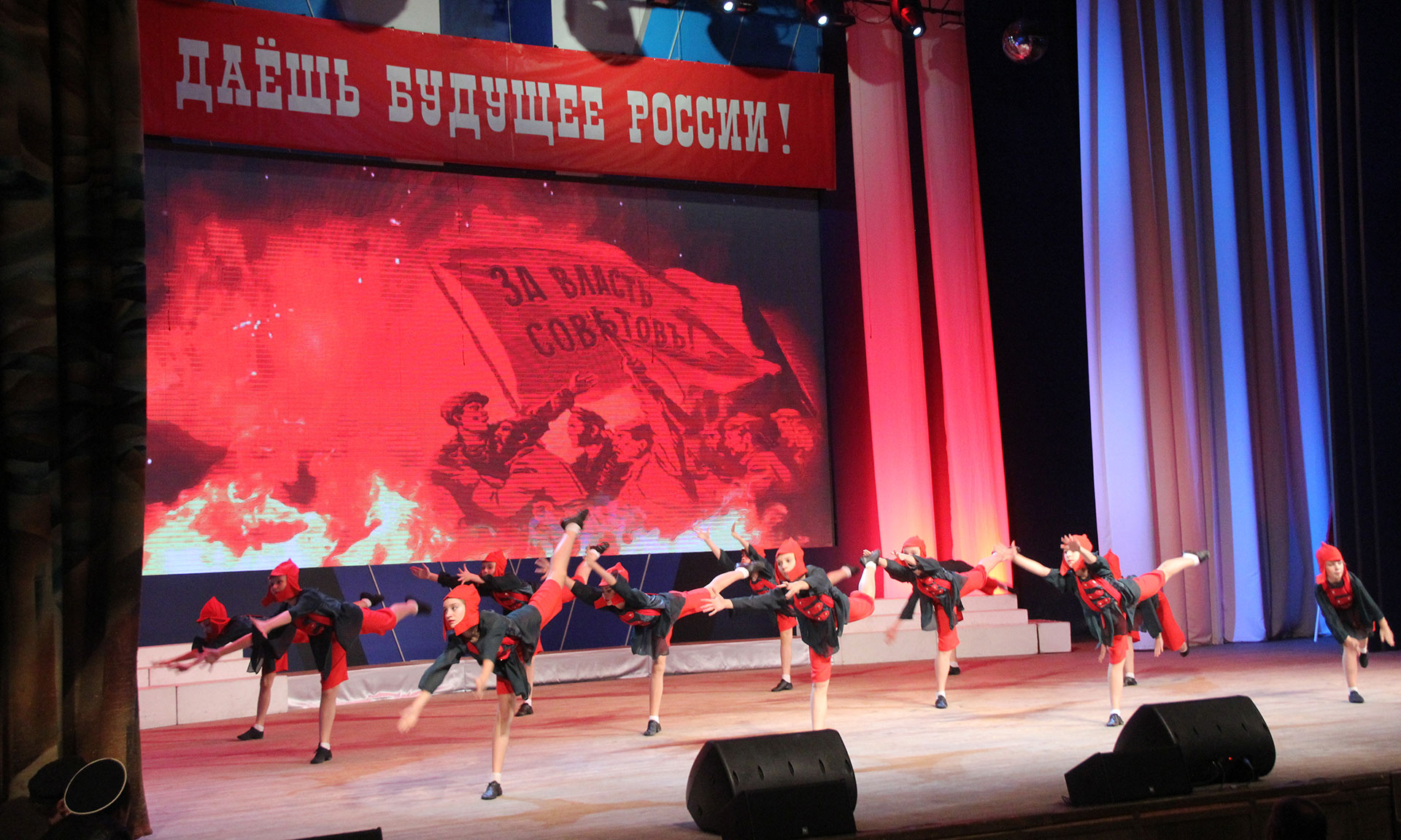 Во второй половине дня по случаю юбилея в концертном зале «Дружба» состоялось большое театрализованное представление, посвященное 100-летию комсомола, участников которого поздравили председатель Брянской областной Думы Владимир Попков, врио главного федерального инспектора по Брянской области Михаил Калашников, заместитель Губернатора Брянской области Александр Коробко.