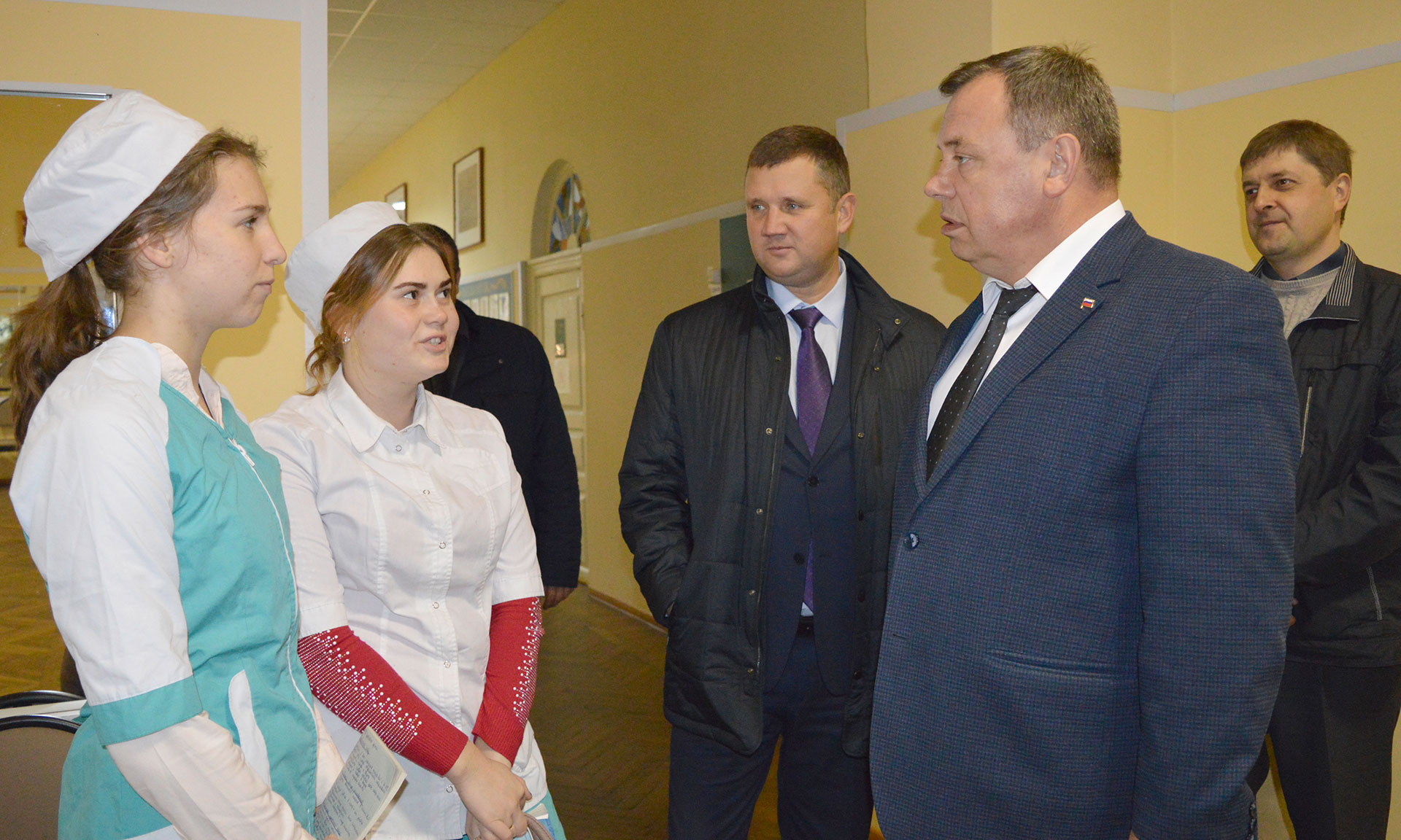 Еще одной площадкой рабочей поездки стал новозыбковский медицинский колледж. Гости осмотрели прилегающую территорию, учебные классы, спортивный зал, кабинеты для практических занятий. В специальном классе с муляжами студентов приобретают профессиональные навыки: внутримышечно вводить лекарственные средства, делать внутривенную инъекцию, оказывать сестринскую помощь при асфиксии новорожденного и проводить другие медицинские манипуляции. Андрей Бардуков отметил, что медицинский колледж готовит средний медицинский персонал — от медсестер и акушерок до зубных техников и фельдшеров и демонстрирует хорошую подготовку специалистов.