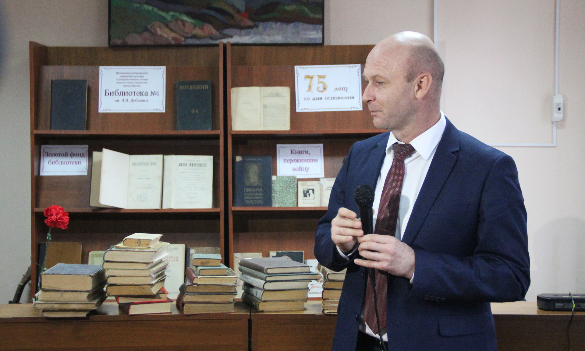 — Дорогие друзья, сегодня мы празднуем 75-летие библиотеки № 1 города Брянска! Позвольте от всей души поздравить вас с этим замечательным событием и передать слова благодарности за ваш кропотливый труд от Губернатора Брянской области Александра Васильевича Богомаза!