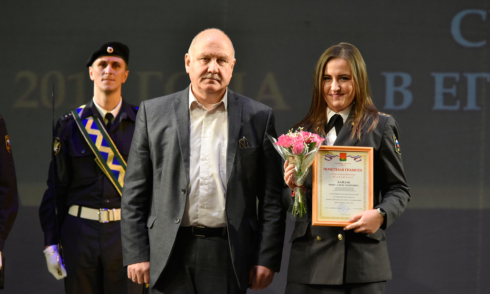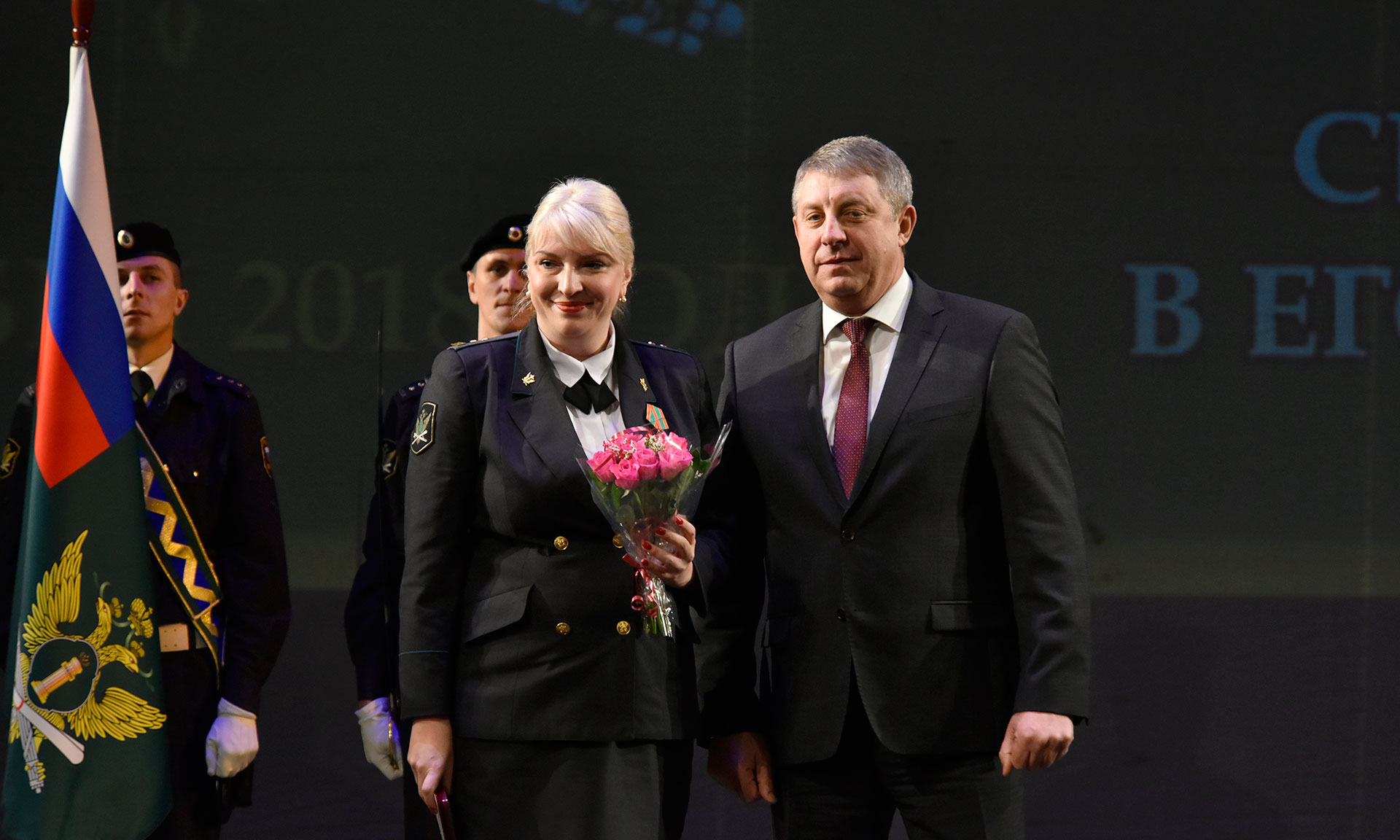 Поздравила всех присутствующих в праздничном зале и вручила награды лучшим работникам службы Главный судебный пристав Брянской области Елена Бывшева. За безупречную службу, усердие, отличие при исполнении должностных обязанностей, высокие достижения в служебной деятельности и в связи с Днем судебного пристава медалью Федеральной службы судебных приставов России «За заслуги» награжден Трифонов Алексей Васильевич, заместитель начальника отдела судебных приставов по Рогнединскому и Дубровскому районам.