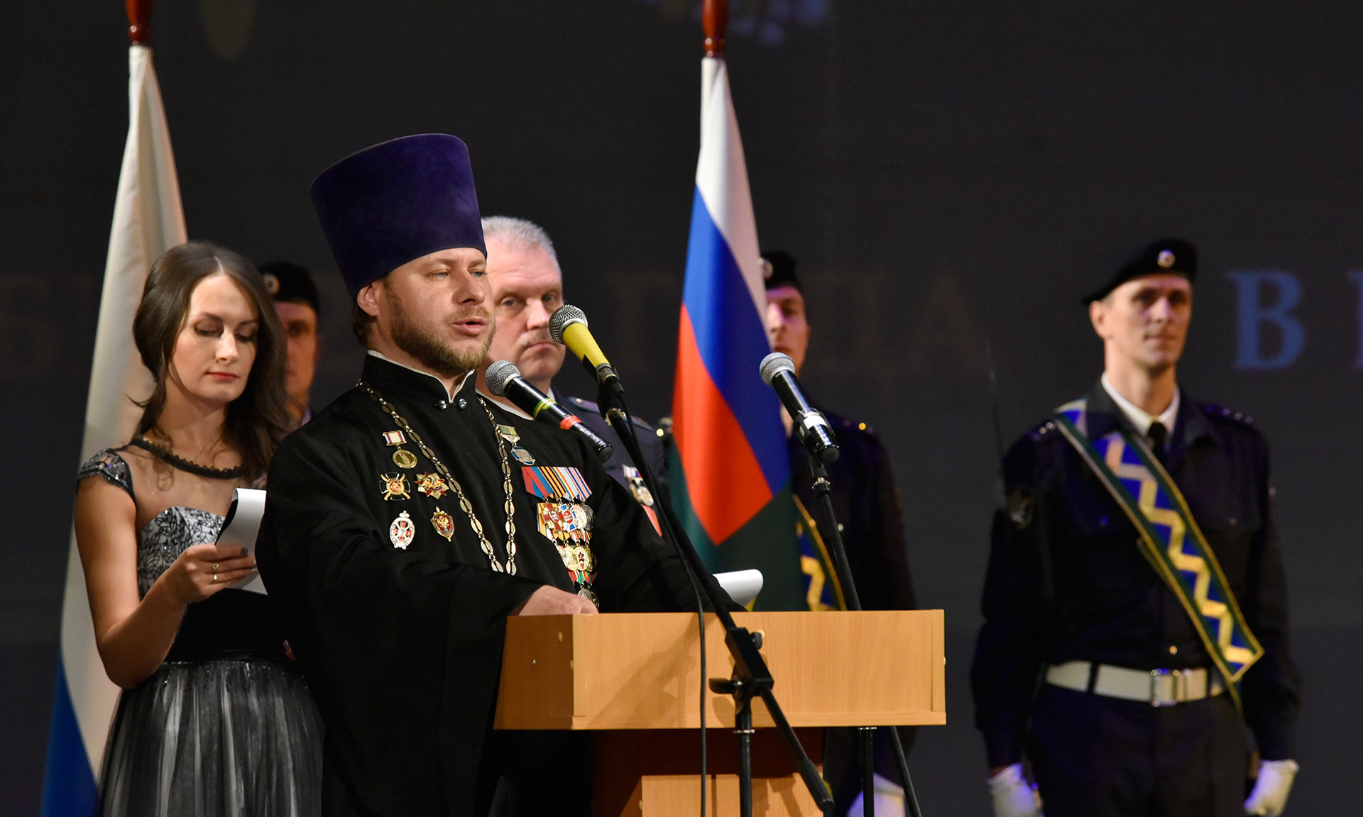 Заведующий отделом по взаимодействию с Вооруженными силами и правоохранительными органами Брянской епархии священник Михаил Агешин зачитал текст Памятного адреса, подписанного Митрополитом Брянским и Севским Александром.