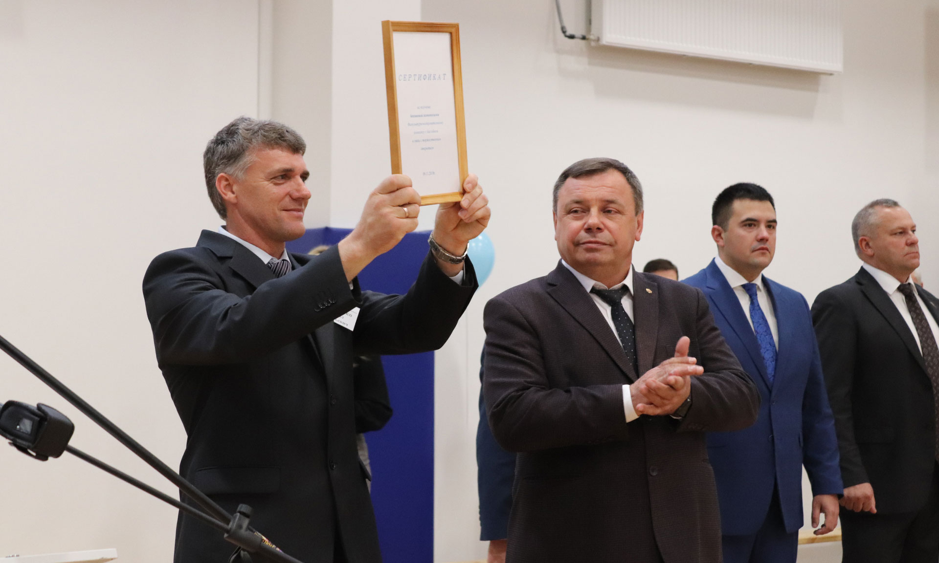 — Уверен, что благодаря новому спортивному комплексу на брянской земле, в городе Клинцы будут воспитываться новые чемпионы. Я хотел выразить слова благодарности руководству Брянской области и города Клинцы. Хотел бы поблагодарить строителей подрядчика ООО «Стройгарант», генерального директора Шкуратову Надежду Андреевну за умелую организацию работ и выполнение строительства. В кратчайшие сроки согласно утвержденному графику они сумели собрать красивый спортивный комплекс.