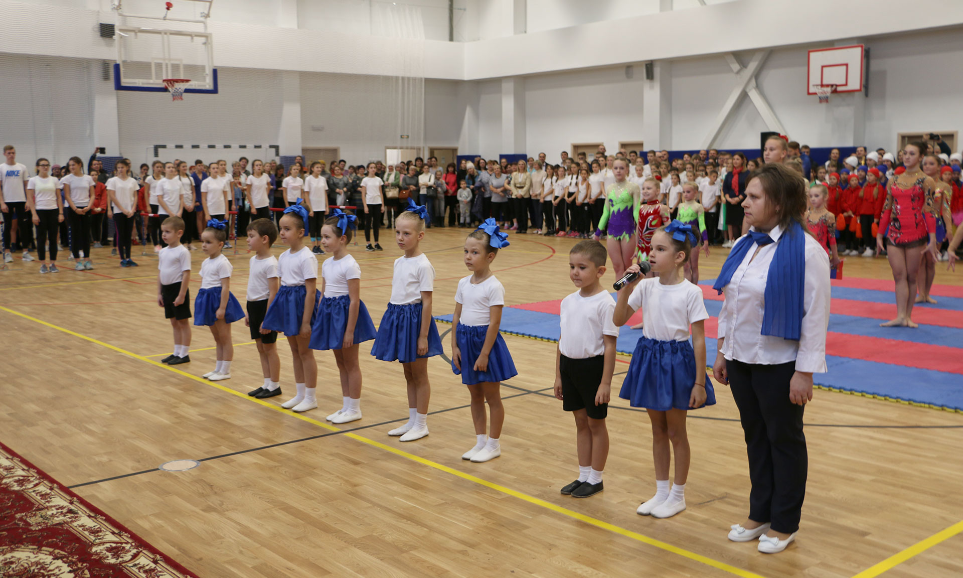Гостей на дорожке, ведущей к ФОКу, приветствовали воспитанники спортивных школ, учащиеся, жители Клинцов. В большом игровом зале почетных гостей встречали юные воспитанники спортивных секций и их тренеры, родители. Спортивный праздник открыло выступление танцевального ансамбля «Акварель».