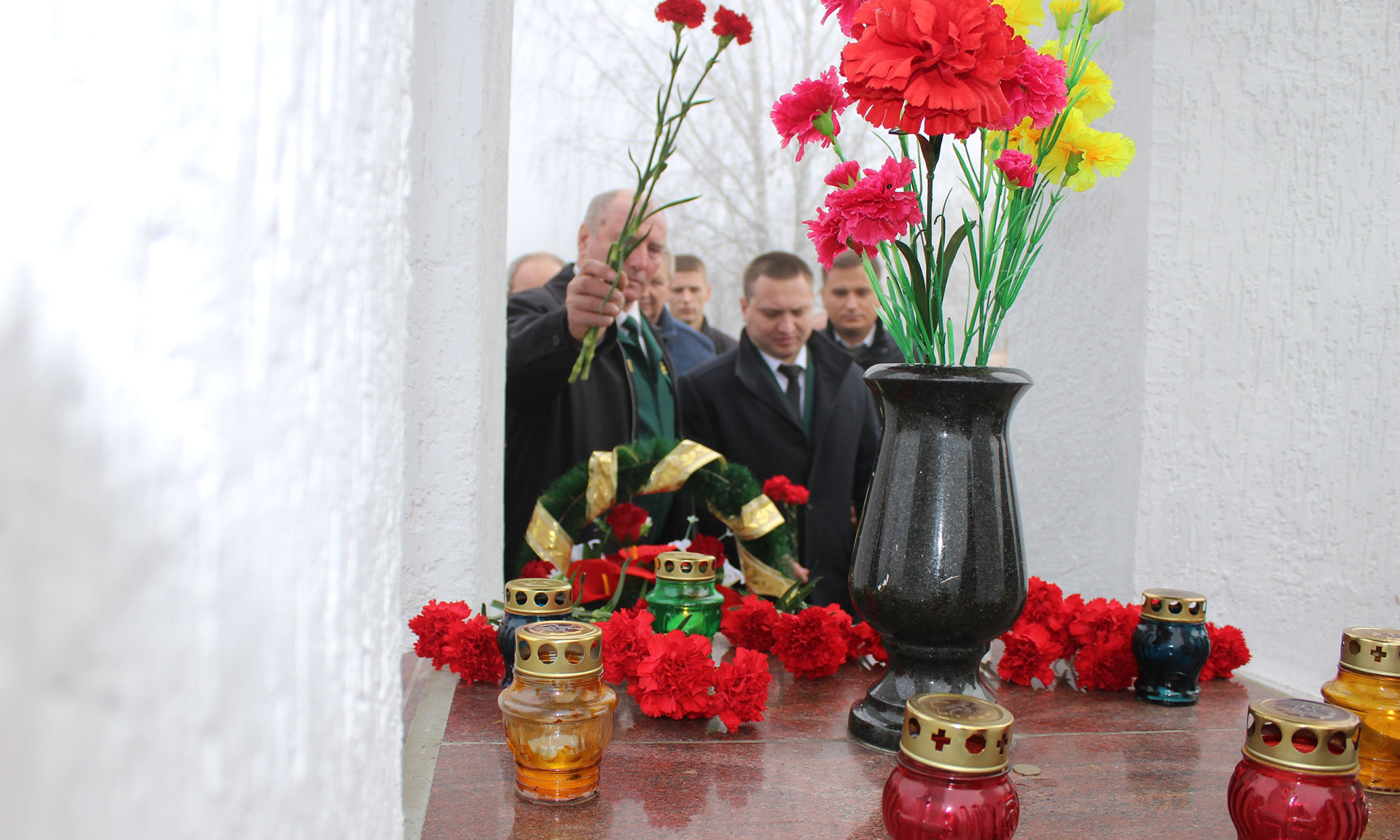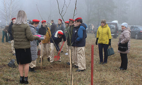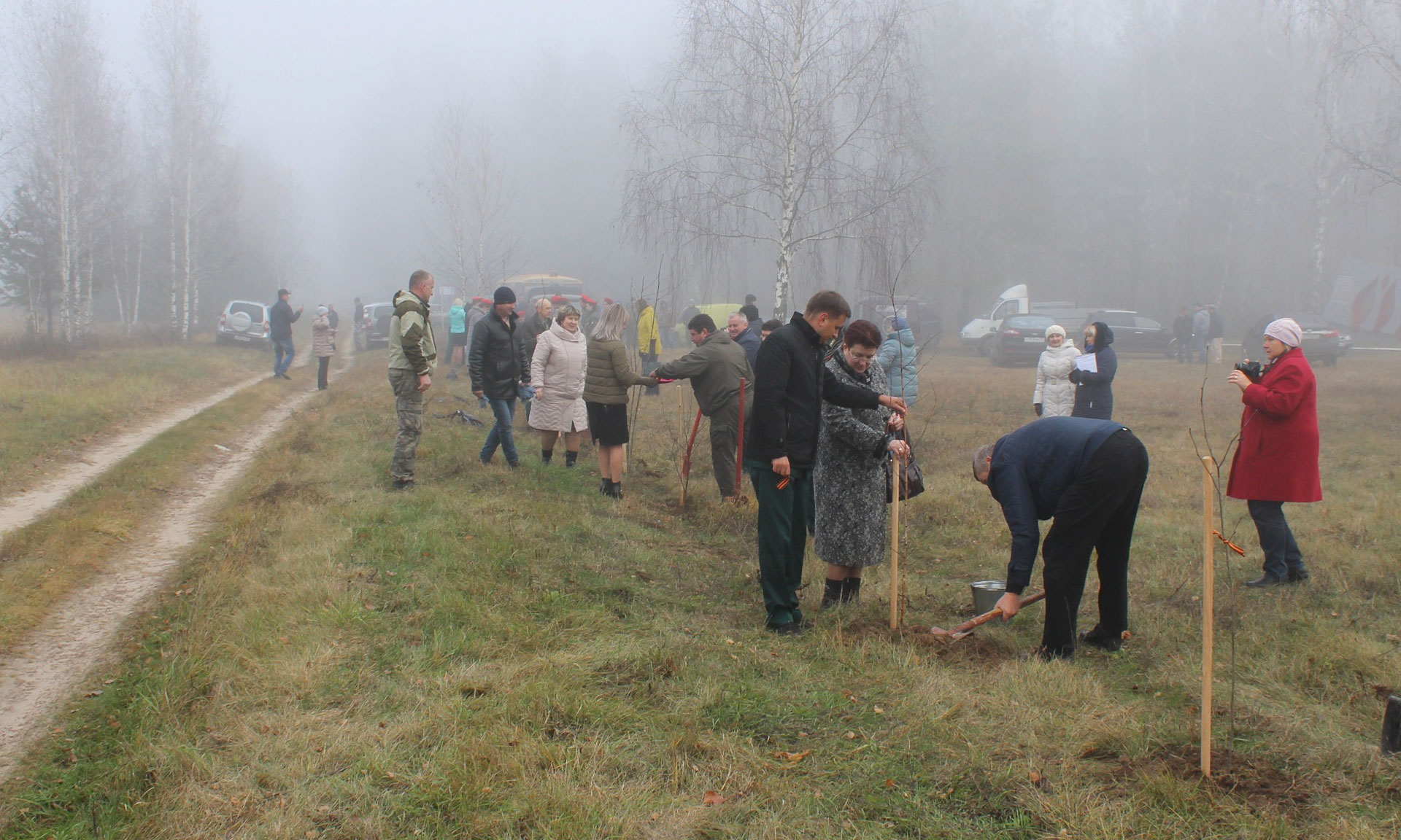 Присутствующие почтили минутой молчания память погибших, возложили цветы к памятнику и высадили молодые деревья берёз, лип и рябин как символ вечной жизни на земле, повязав на них Георгиевские ленточки.