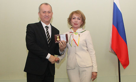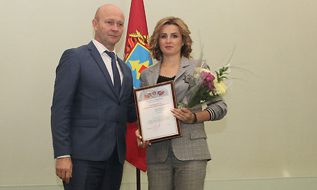 Коллег поздравила председатель Союза организаций профсоюзов «Федерация профсоюзов Брянской области» Ольга Полякова. Она вручила нагрудный знак Федерации независимых профсоюзов России «За активную работу в профсоюзах» Татьяне Банной — ведущему специалисту отдела культуры и по делам молодежи Клинцовской городской администрации Брянской области, председателю Клинцовской территориальной организации профсоюза, председателю координационного Совета отраслевых профсоюзов г. Клинцы и Клинцовского района Брянской области.