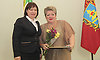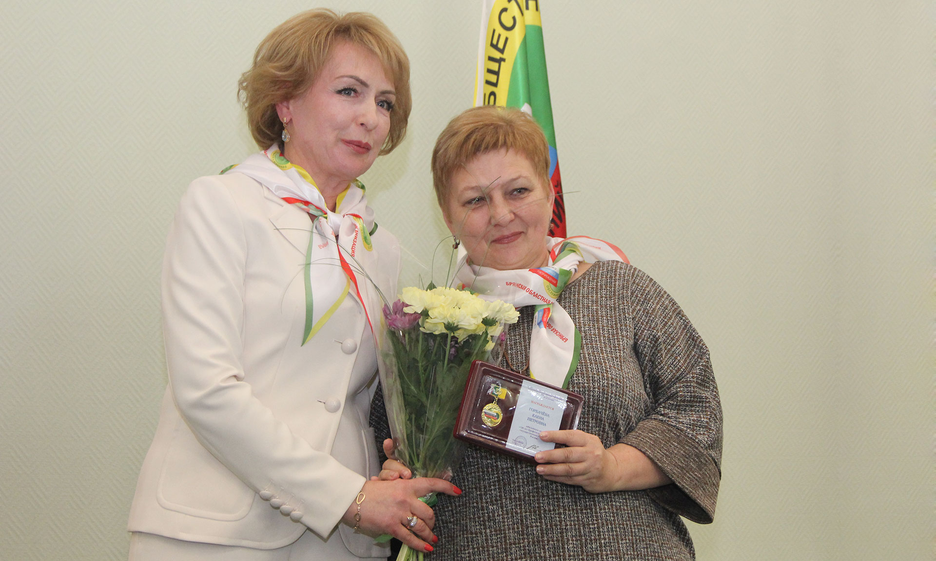 Председатель Брянской областной организации профессионального союза работников государственных учреждений и общественного обслуживания Российской Федерации Наталья Павлюченко отметила важность работы, проводимой профсоюзами, и вручила юбилейные знаки «100 лет профсоюзу работников государственных учреждений России».
