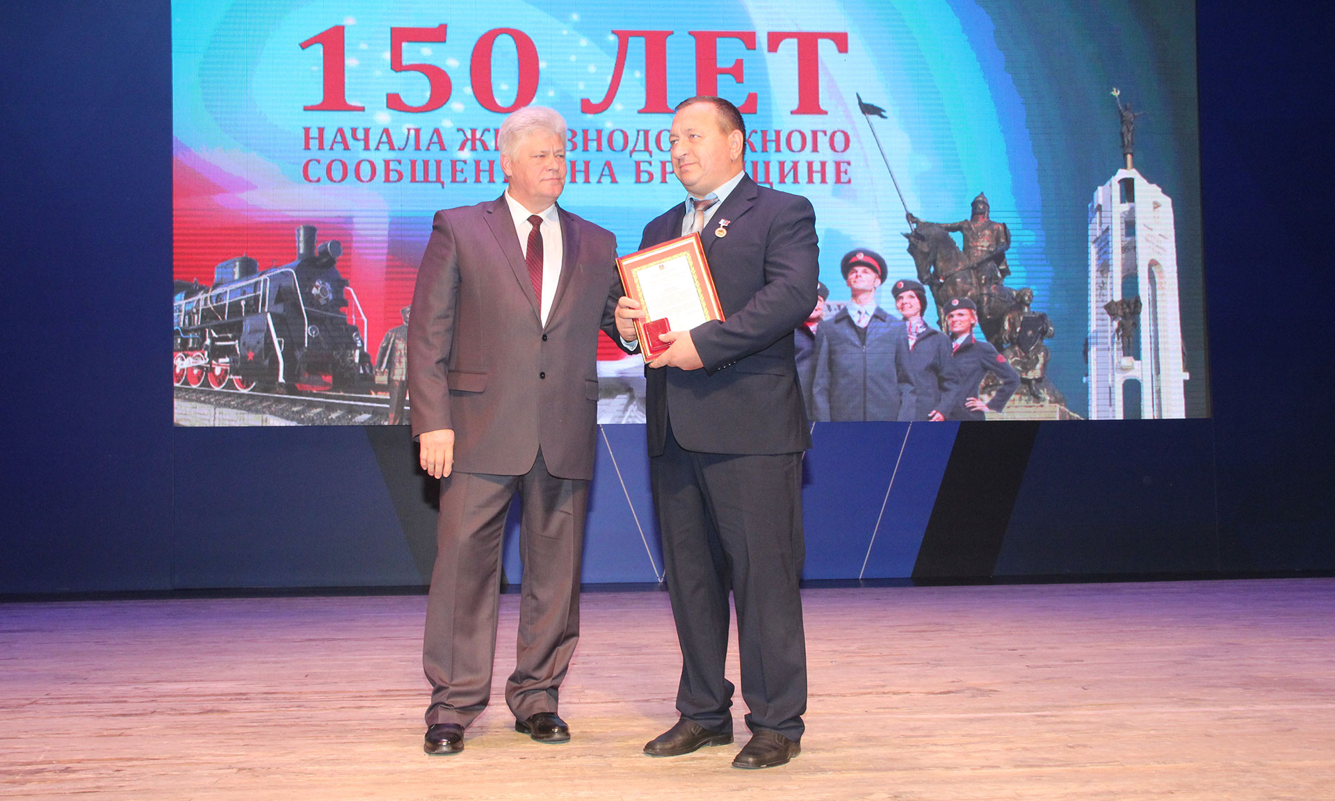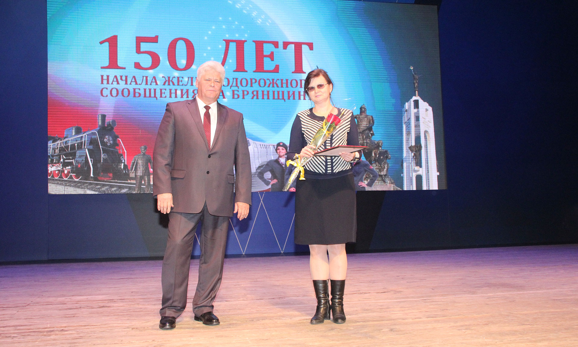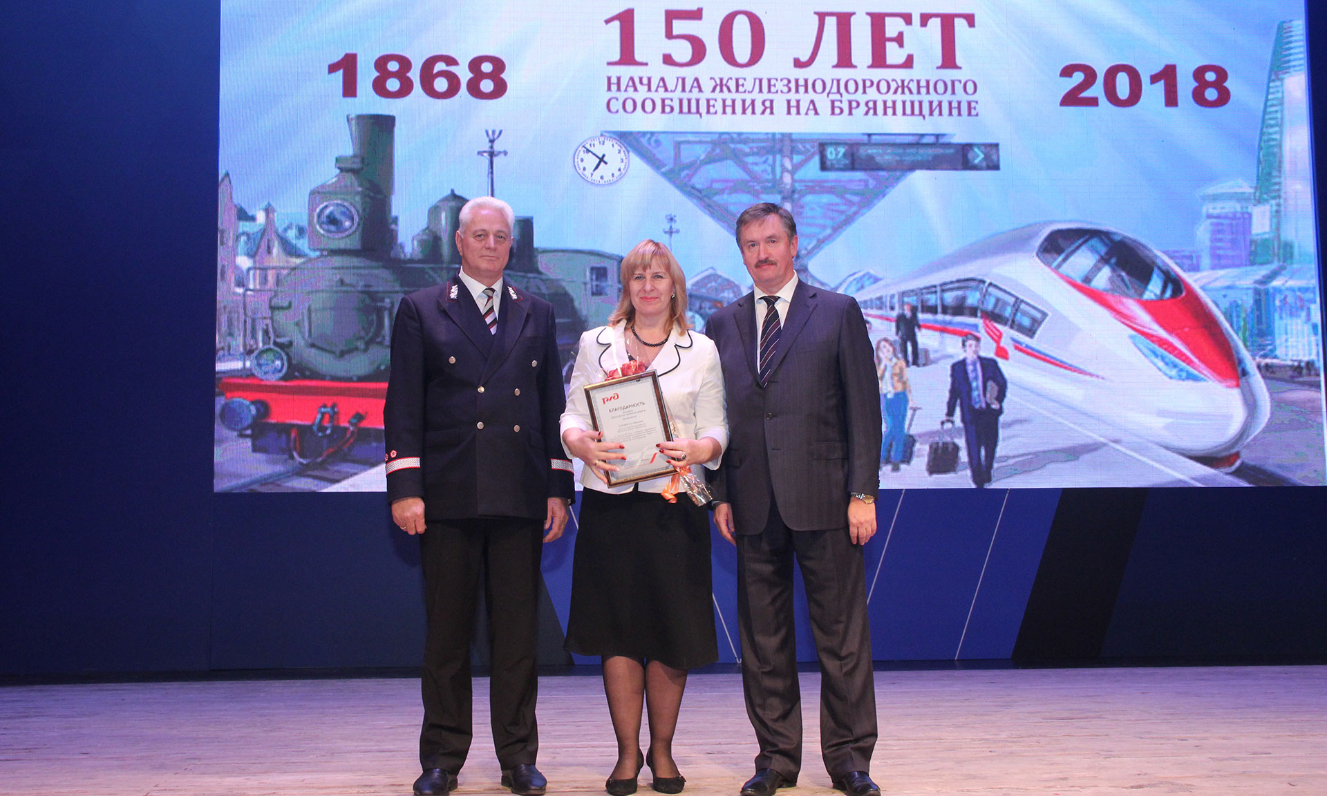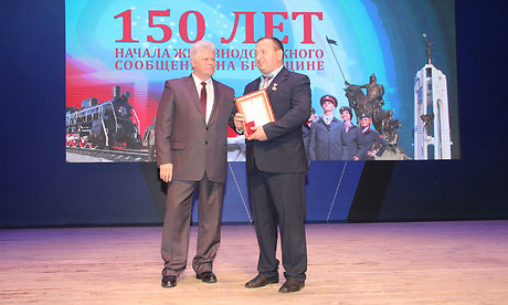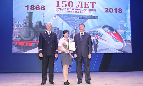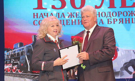 За многолетний добросовестный труд и профессионализм, а также в связи со 150-летием начала железнодорожного движения на участке Орел-Брянск Почетной грамотой Губернатора Брянской области награждены: Людмила Игуменова — врач-акушер-гинеколог негосударственного учреждения здравоохранения «Отделенческая больница на станции Брянск-II», Наталья Терехова — дежурный помощник начальника вокзала «Брянск-Орловский», Сергей Шершнев — осмотрщик-ремонтник вагонов эксплуатационного вагонного депо «Брянск».