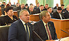 — Дорогие друзья, приветствую вас всех на гостеприимной Брянской земле. Меня не может не радовать то, что сотрудничество регионов России и Беларуси с каждым годом выходит на все более высокий уровень и прибавляет не только в количественных показателях, но и в качественных. Совместные рабочие группы по развитию делового сотрудничества созданы в 60 регионах Российской Федерации. В Белоруссии успешно работают порядка 3 тысяч организаций с российским уставным капиталом. В России зарегистрировано почти 50 совместных сборочных производств. Это не случайно, что наш Форум проходит именно на Брянской земле. Этот регион демонстрирует широчайшую и глубокую кооперацию многих предприятий с белорусскими организациями. Взаимодействуют регионы, хозяйства и субъекты малого и среднего бизнеса! Хотя определенные вопросы еще остаются и задача нашего Форума и определить те точки, которые законодательное собрание и Беларуси и России на законодательном уровне исследовать и решить! Желаю всем участникам Форума плодотворной и успешной работы.