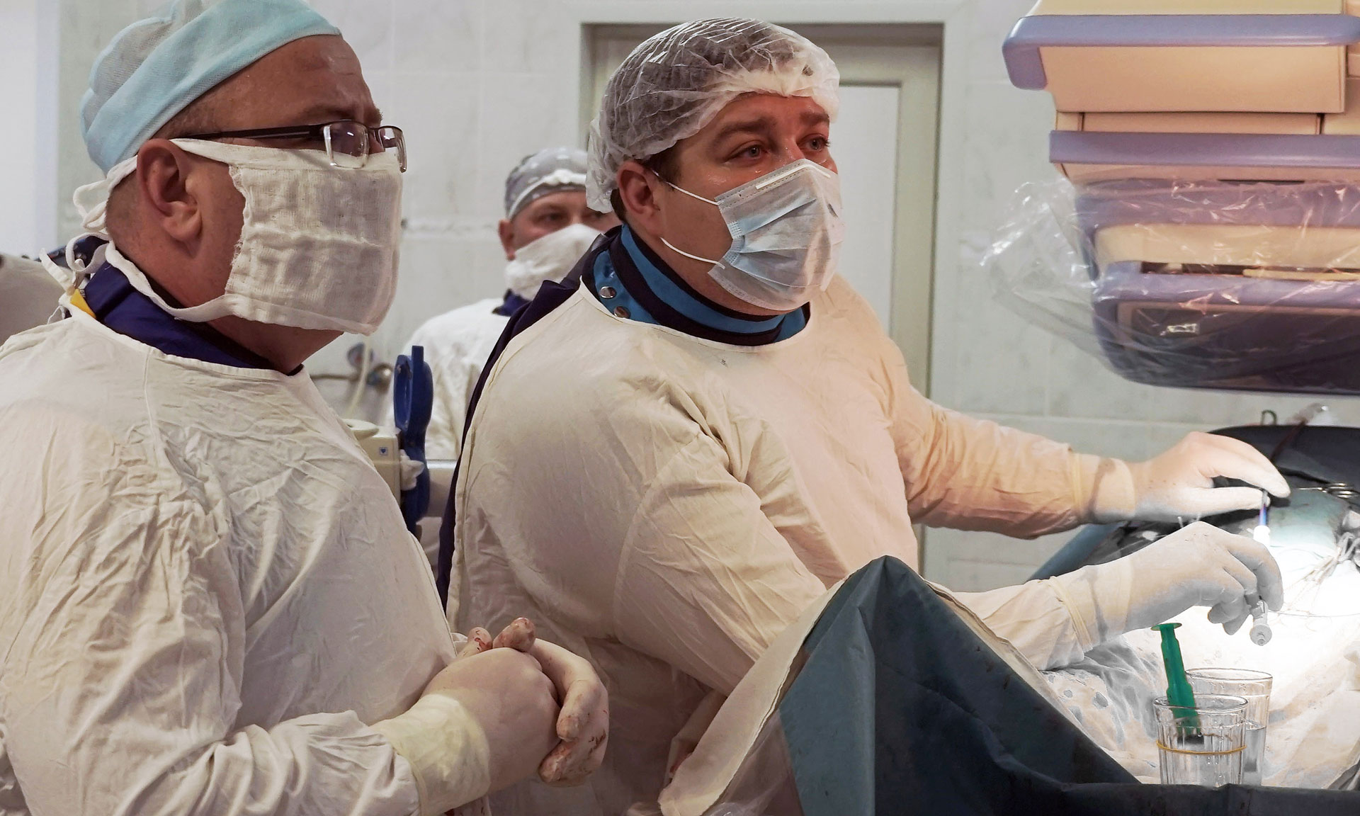 Доктор медицинских наук, хирург Федерального клинического центра высоких медицинских технологий Михаил Мовсесянц вместе с хиругами Брянской областной больницы № 1 Сергеем Галагановым и Сергеем Петрухиным провел уникальную операцию.