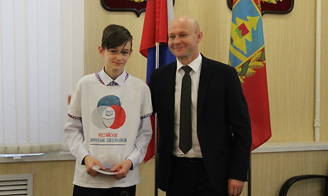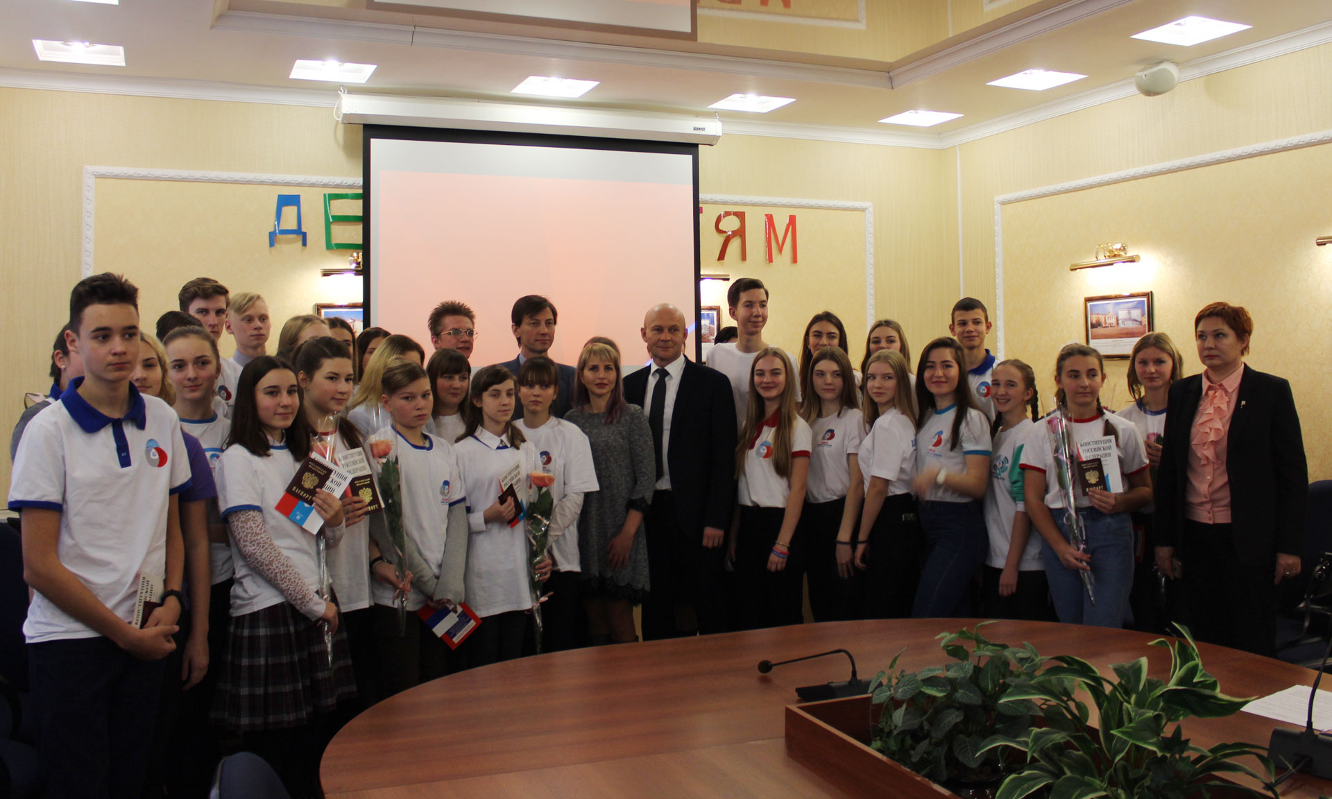 12 декабря заместитель Губернатора Брянской области Александр Коробко принял участие в Общероссийском приеме граждан, а также вручил паспорта активистам регионального отделения общественно-государственной детско-юношеской организации «Российское движение школьников».