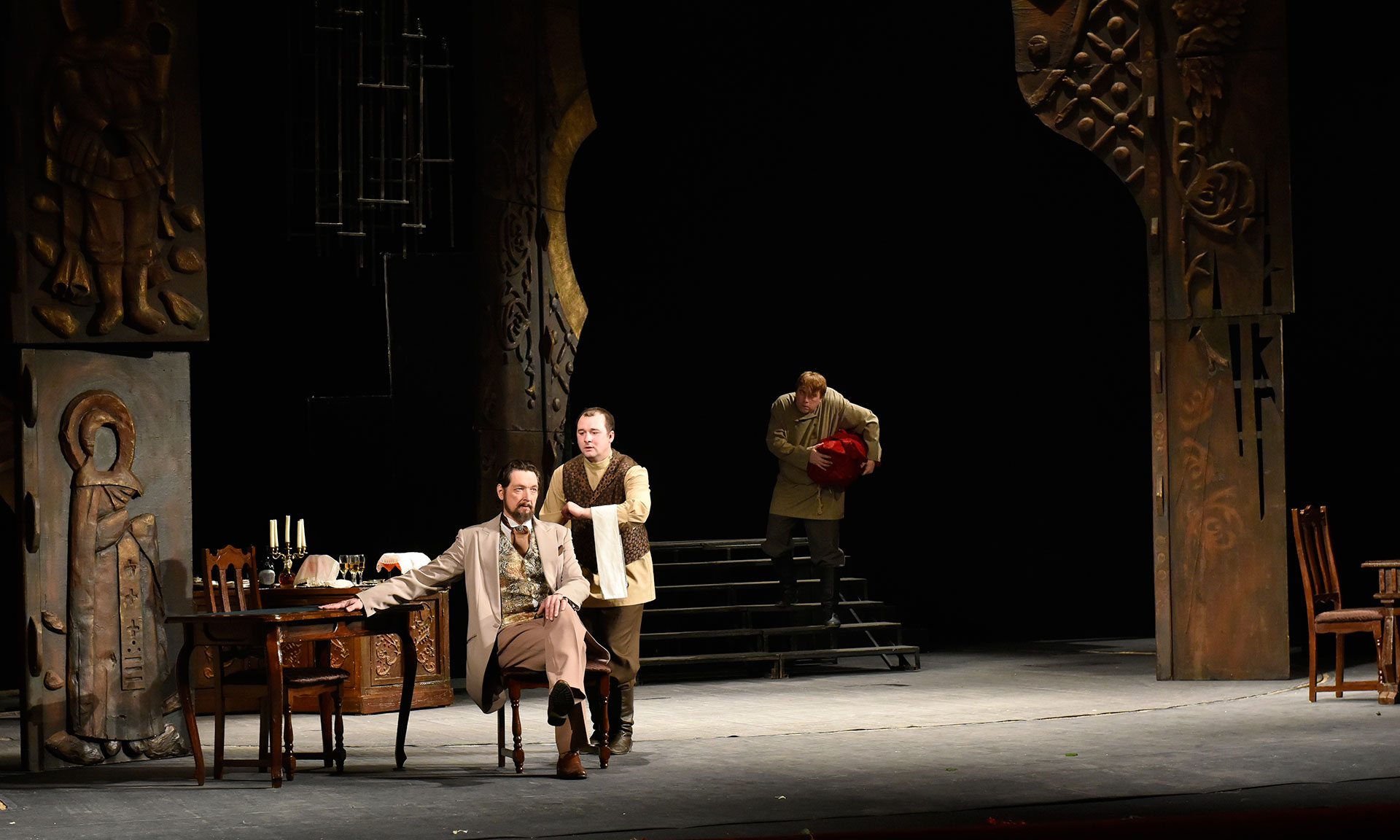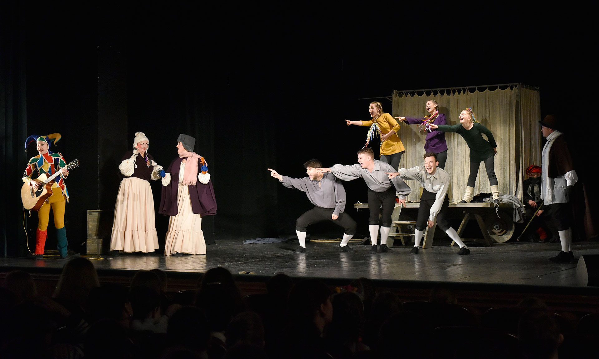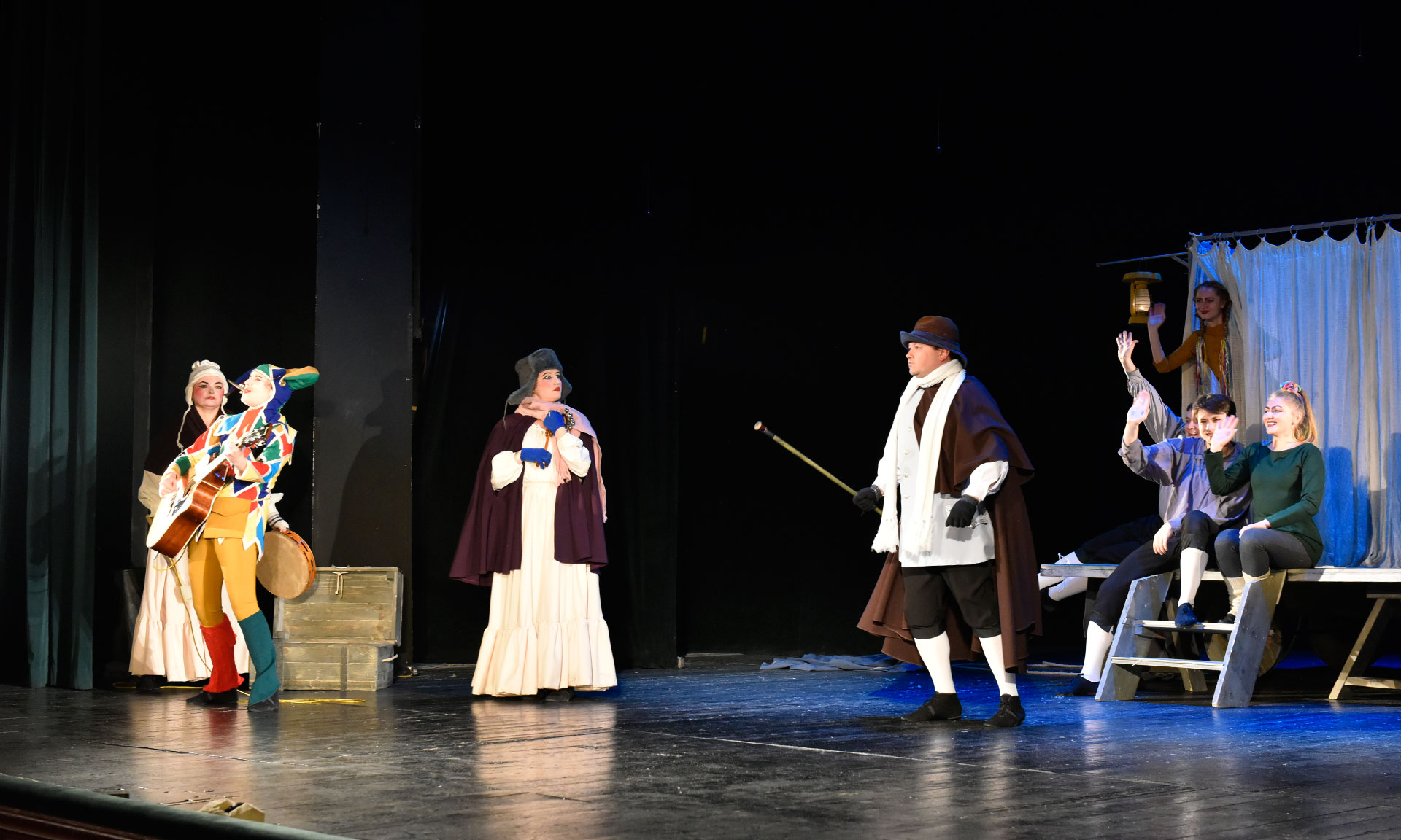 Продолжился праздник церемонией вручения студентами театрального отделения Брянского областного колледжа искусств подарков с символикой Года театра и цветов ветеранам брянских театров и спектаклем «Игроки».