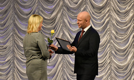 Александр Коробко вручил заслуженные награды. За большой вклад в развитие театрального искусства, добросовестный многолетний труд в отрасли культуры, преданность профессии Благодарностью Губернатора Брянской области награждены: Екатерина Сизонова — художник-модельер театра кукол Брянского областного театра для детей и юношества, Елена Доманова — главный администратор театра кукол Брянского областного театра для детей и юношества.