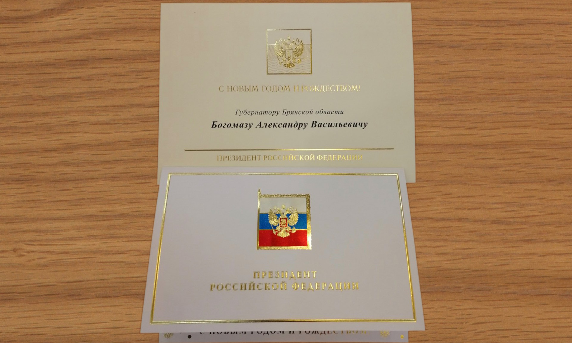 Президент Российской Федерации Владимир Путин поздравил Александра Богомаза с Новым годом и Рождеством