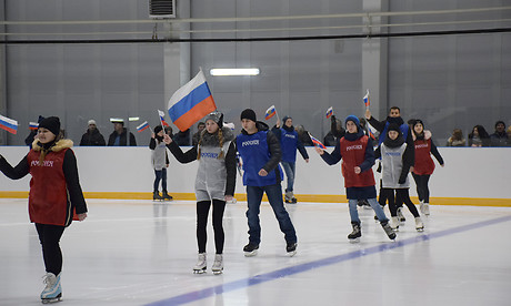 Символический ключ директору физкультурно-оздоровительного комплекса Елене Володиной вручил начальник Управления площадных объектов «Газпром инвестгазификация» Павел Фомин. После церемонии торжественного открытия, директор Елена Володина провела небольшую ознакомительную экскурсию для почетных гостей по новому ФОКу. Затем почетные гости перешли на ледовую арену, где уже собрались сотни людей. Как только зазвучала песня «Герои спорта», которую исполнял учащийся Сачковичской школы Максим Сидоренко, на лед выехали школьники школ района и игроки юношеской хоккейной команды «Авангард» Климово.