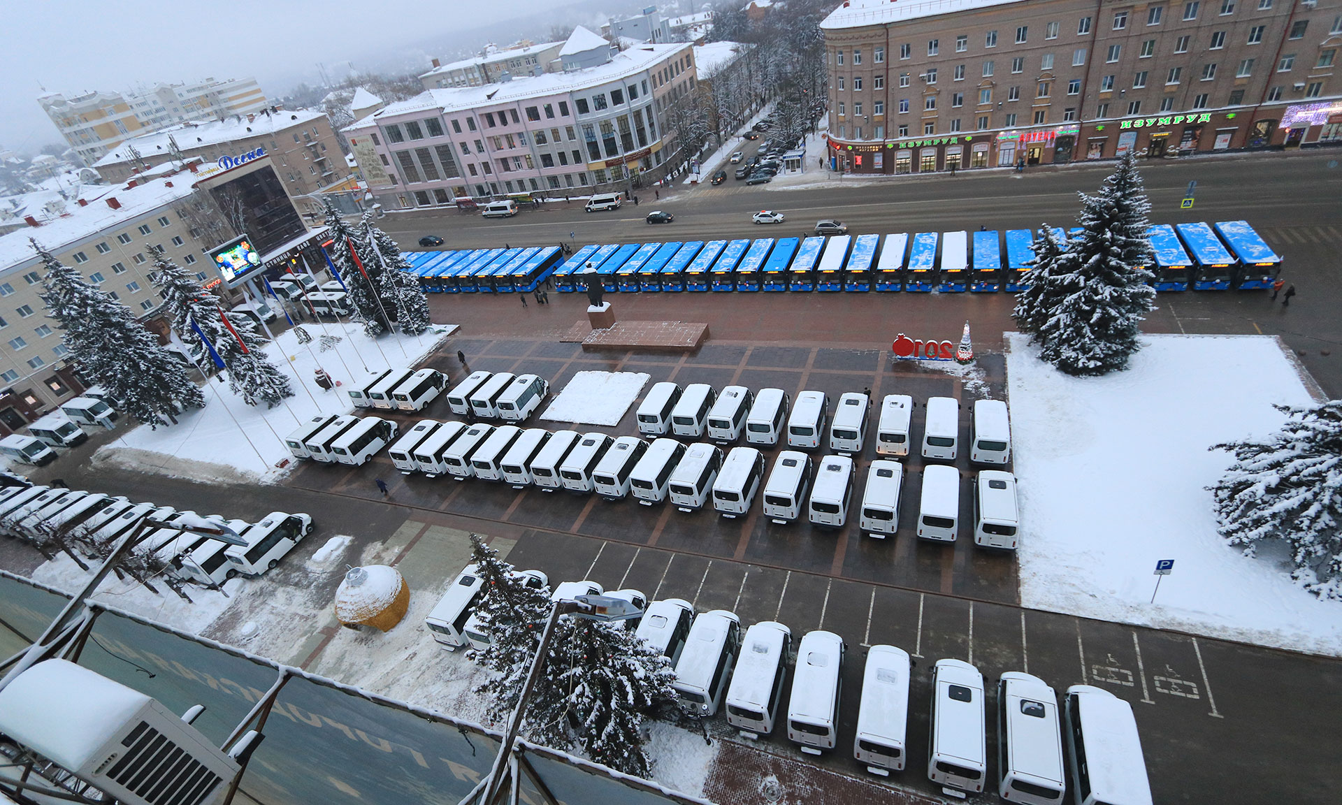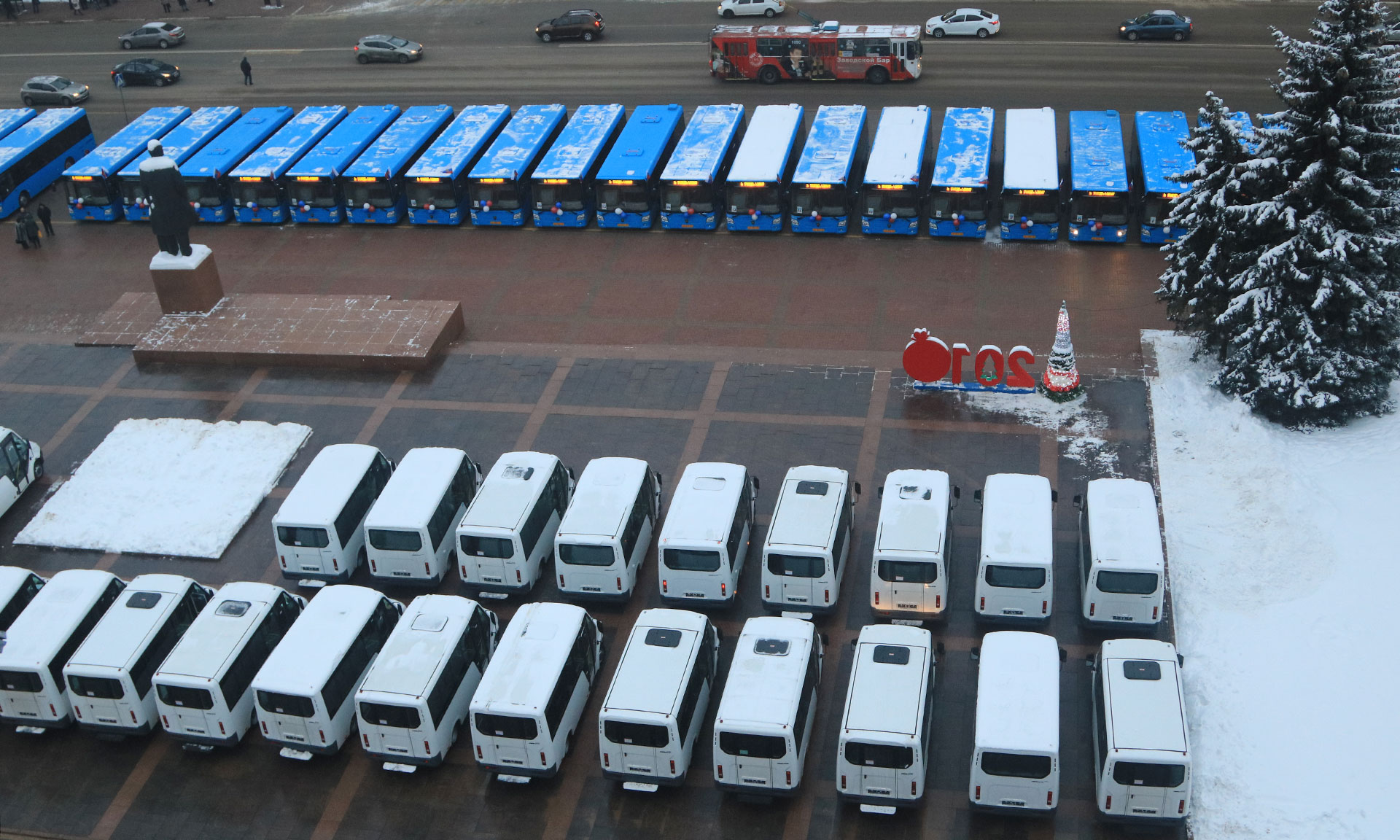 114 новых автобусов выстроились на площади Ленина — это очередная партия пассажирского транспорта приобретенного за счет бюджетных средств. 2 автобуса «ПАЗ», 36 ЛиАЗов, а также 76 автобусов марки «Газель-Next» и «Луидор» сегодня разъедутся по всей области.