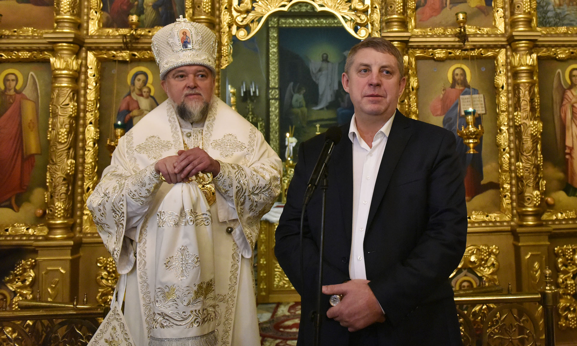 Обращаясь к епископу Клинцовскому и Трубчевскому Владимиру, Александр Богомаз поблагодарил его за то, что он делает на Брянской земле:
