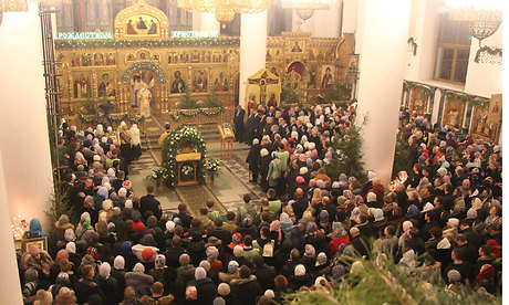 Сотни верующих собрались в святую рождественскую ночь на соборную молитву в главный храм Брянской епархии. Рождество Христово принято считать семейным праздником, поэтому среди прихожан было немало детей, пришедших вместе со своими родителями встретить родившегося в Вифлееме Богомладенца Христа. Перед причастием иеромонах Корнилий (Недбаевский) огласил Рождественское послание Митрополита Брянского и Севского Александра. По окончании Литургии было совершено славление празднику Рождества Христова.