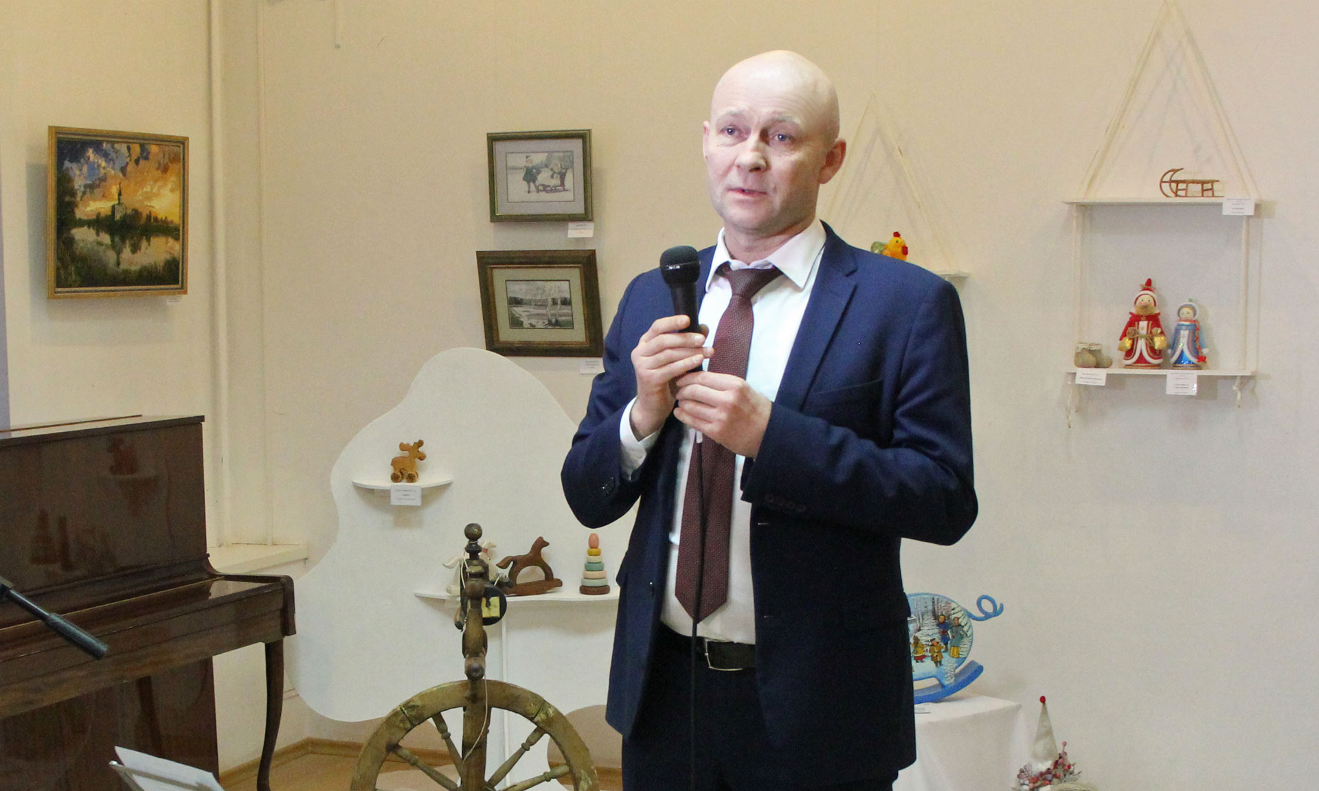 — Дорогие друзья, сегодня в канун великого православного праздника Крещения, мы с вами открываем хорошую, добрую, сказочную выставку. В наших сказках воплощены идеалы добра, победы добра над злом. Александр Сергеевич Пушкин говорил, что «сказка — ложь, да в ней намек, добрым молодцам урок». Я уверен, что сегодня и завтра, и за все время работы выставки все посетители в каждом произведении найдут что-то доброе, сказочное, чудесное. Очень здорово, что наряду с работами наших именитых мастеров здесь представлены работы совсем юных жителей Брянской области, для которых эта выставка первая в их большой и чудесной жизни. От имени Губернатора Александра Васильевича Богомаза, от себя лично хочу сказать еще раз огромное спасибо тем, кто своими руками создает сказку. Хочется призвать наших взрослых читать больше русских народных сказок детям. Наши сказки добрые, хорошие. Всем добра и всего самого наилучшего!