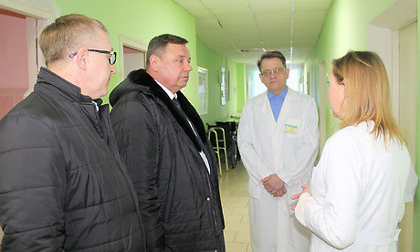 В сопровождении главного врача Андрея Белоножко, главы администрации Стародуба Дмитрия Винокурова и главы администрации Стародубского района Татьяны Серяк они побывали в отделениях медучреждения, поликлинике, осмотрели пищеблок, станцию скорой помощи. Также Владимир Оборотов и Андрей Бардуков пообщались с пациентами районной больницы, врачами и медицинским персоналом.