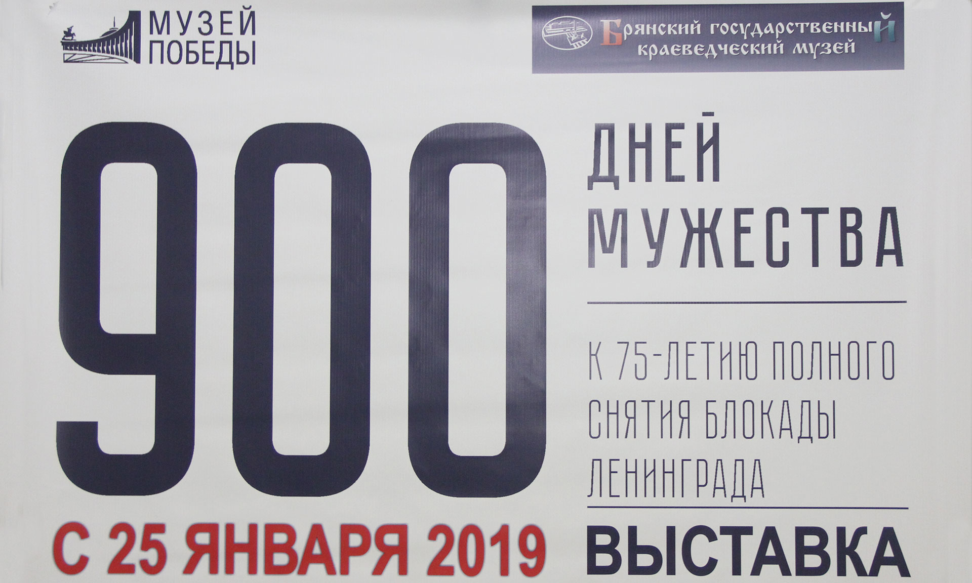 К 75-летию снятия блокады Ленинграда в Брянском государственном краеведческом музее открылась выставка «900 дней мужества». Материалы выставки предоставлены Центральным музеем Великой Отечественной войны 1941—1945 гг. (Музеем Победы) в соответствии с договором о сотрудничестве в рамках федерального проекта «Территория Победы».